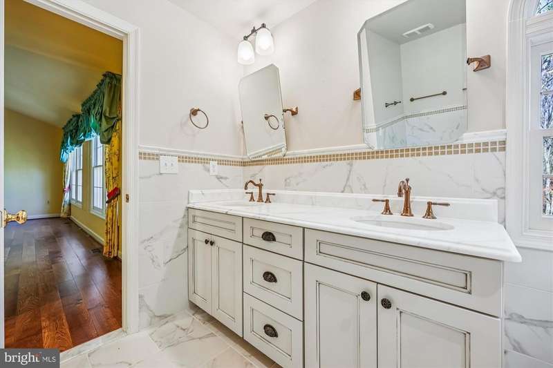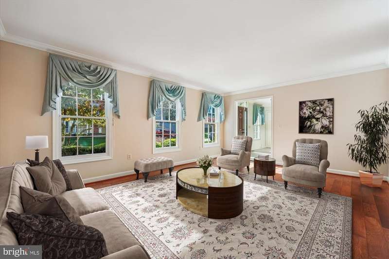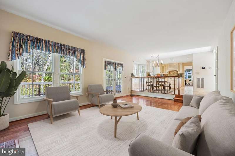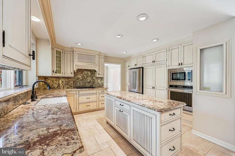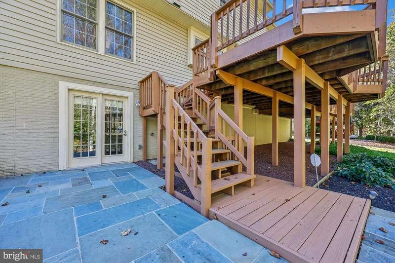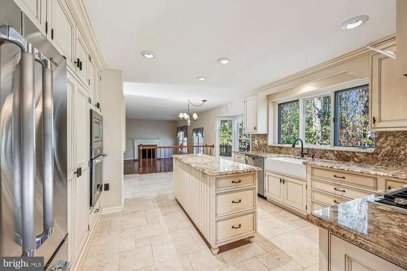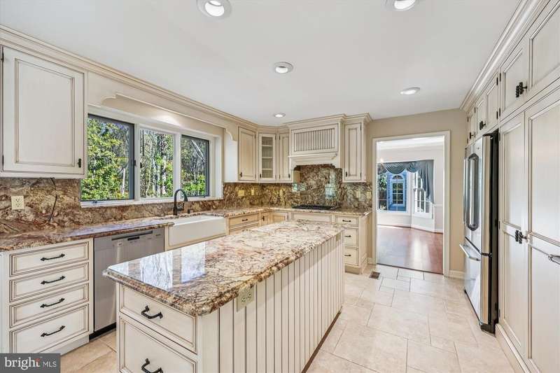 Fall in love with 12329 Galesville Drive, nestled on a quiet street in the desirable Quince Orchard Valley community. This stately colonial offers 3,692 total square feet across three finished levels and features four spacious bedrooms, three full bathrooms, and a convenient powder room. Highlights include wide-plank hardwood floors, a chef's kitchen, updated bathrooms, recessed lighting, crown molding, chair railings, a fireplace, and abundant windows that fill the home with natural light. Set on a meticulously landscaped 0.31-acre lot backing to woods, the property boasts an expansive tiered deck with walk-down stairs leading to the patio and backyard-ideal for relaxing or entertaining. At the heart of the home, the high-end French country kitchen showcases granite countertops with a matching backsplash, stainless steel appliances, a Wolf gas cooktop with hood, a premium Dacor refrigerator, a farmhouse sink, a KitchenAid convection wall oven and built-in microwave, a pantry with roll-out shelving, a center island, and a breakfast area framed by windows. The kitchen flows into a spacious family room with a gas fireplace and glass doors opening to the deck. A living room, dining room, and powder room complete the main level. Upstairs, you'll find four bedrooms and two full bathrooms. The spacious owner's suite features a cathedral ceiling, a walk-in closet, and a second auxiliary closet. The spa-like en-suite bathroom boasts marble finishes throughout-including the flooring, wainscoting, and dual vanity-and offers both a classic soaking tub and a glass-enclosed shower. The walkout lower level includes durable LVP flooring, a large recreation room, a full bathroom, a bonus workroom with Craftsman tables and tools, a laundry room, and generous storage space. Ideally located just minutes from numerous dining, shopping, and entertainment options, with easy access to major commuter routes. Perfect for outdoor enthusiasts with nearby parks, recreation facilities, and top-rated golf courses. Highly rated schools further enhance its appeal. Don't miss this incredible opportunity to own in one of Montgomery County's most sought-after communities!