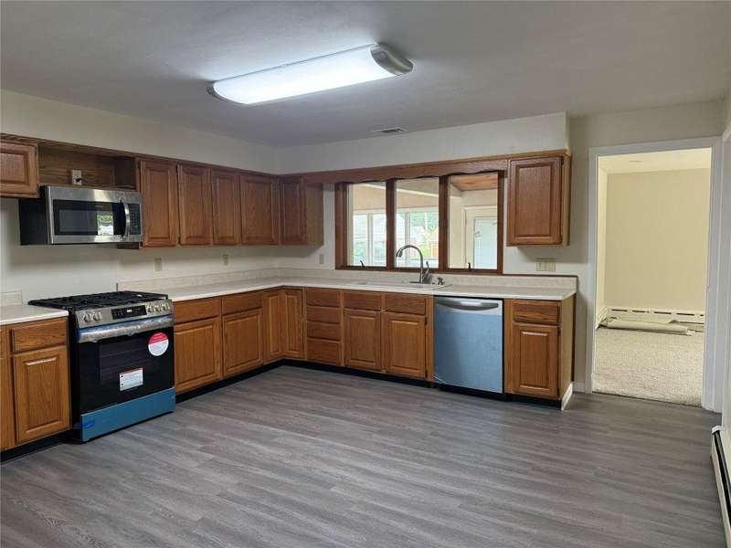 Spacious ranch home which has been recently updated. A large formal living room and dining room great for entertaining. A massive family room with vaulted ceilings and a wall of windows provide a secondary seating area. The oak kitchen has all new stainless appliances and lots of counter space. The third bedroom opens up to the enclosed heated sun room. The home has a new roof, all new flooring, and freshly painted and new electrical panel box The garage is oversized 24x22. It's a great place to call home.