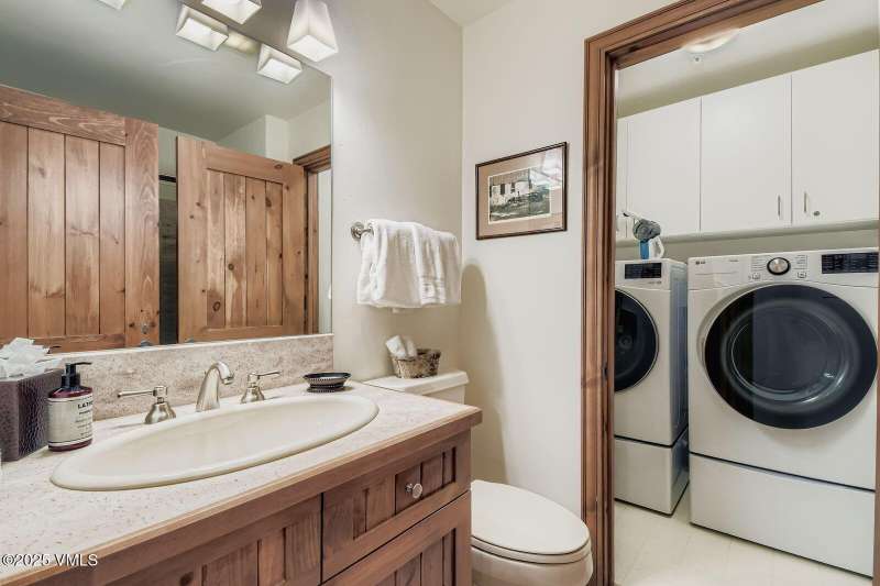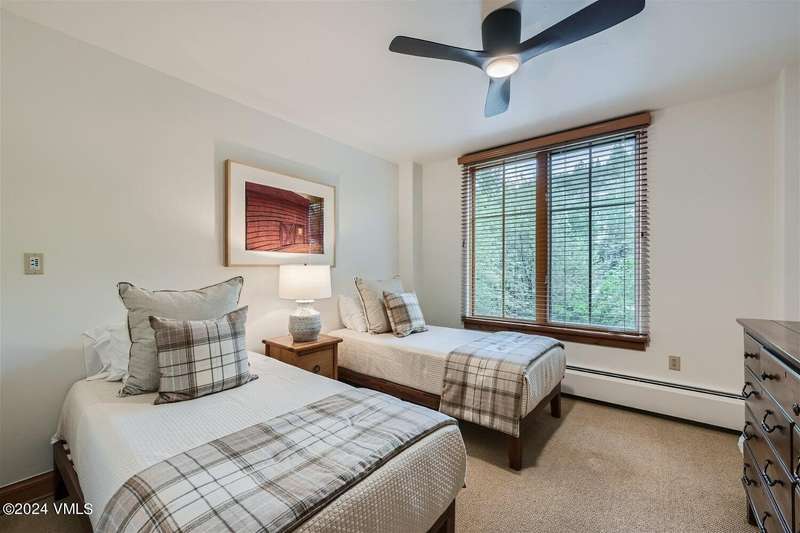 Ideal ski & golf condo. Elkhorn Lodge #202 offers a prime ski-in/ski-out location in the gated Beaver Creek Resort, perfectly positioned next to the Elkhorn chairlift for effortless access to the slopes and adjacent to the Beaver Creek Golf Club. This spacious 2-bedroom residence, each with ensuite bathrooms, also includes a third bathroom with a shower to accommodate overflow guests. After a day on the slopes, unwind by the elegant fireplace or enjoy apres-ski moments on the oversized deck, surrounded by serene, snow-dusted aspen trees. Large windows flood the living spaces with natural light and offer picturesque winter views. Elkhorn Lodge, a boutique building of only 52 residences, is meticulously maintained and offers luxury amenities, including a ski locker room, fitness center, outdoor hot tubs, underground heated parking, and owner storage. A complimentary resort shuttle ensures seamless access throughout Beaver Creek and nearby Bachelor Gulch. Beaver Creek Village is home to fine dining, shops, art galleries, bars, and attractions such as the ice rink, ski school, and Vilar Performing Arts Center. Whether you prefer beginner slopes or advanced terrain, the resort offers something for every skier. The Beaver Creek Golf Clubhouse is next door, providing another wonderful amenity just steps away. This property is also a sought-after rental opportunity for owners looking to offset carrying costs with short-term rentals. Offered furnished and turn-key.