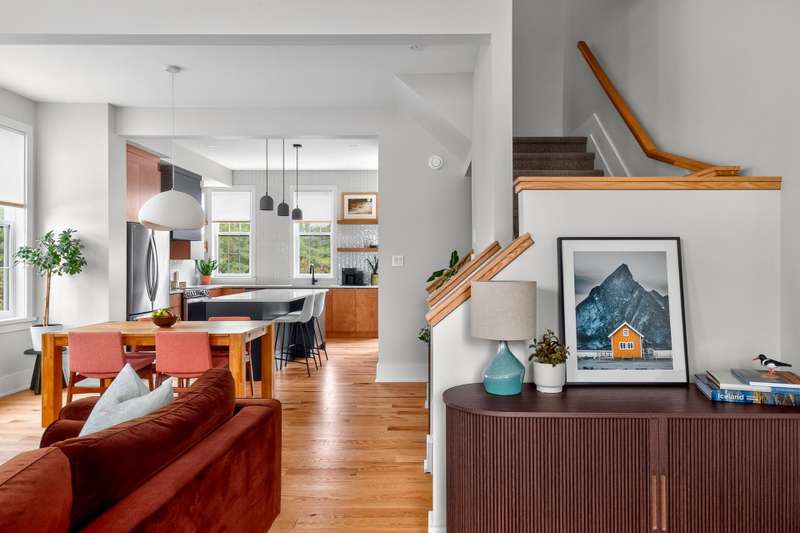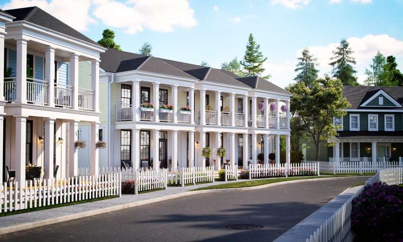 Hendrick Farm - New construction: curate your interiors from a considered palette of exceptional finishes. French Colonial architecture: stacked porches oriented to the Gatineau Hills, with board-and-batten cladding and shiplap detailing for a warm, timeless silhouette. Main level (~1,460 sq ft): open-plan living with 10-ft ceilings and expansive glazing that bathes the space in light. High-spec finishes: wide-plank floors, bespoke cabinetry, quartz worktops, large-format tile, architect-grade fittings and designer lighting. Show home available to view by appointment.