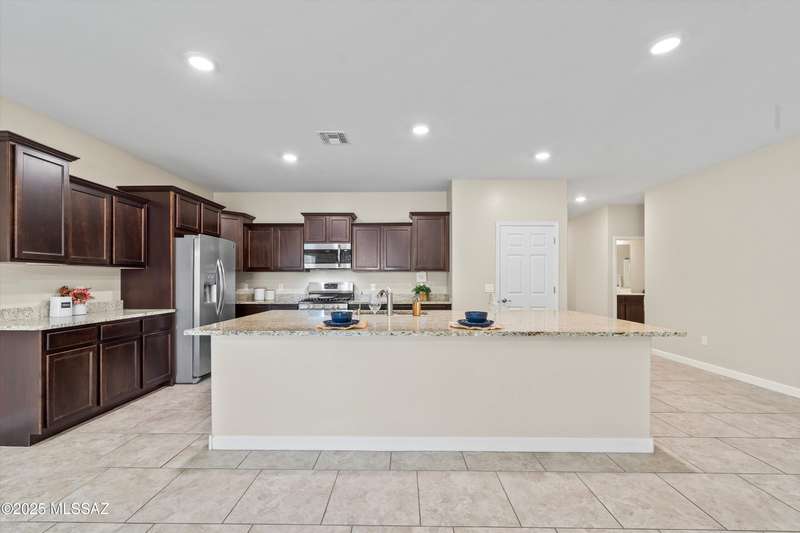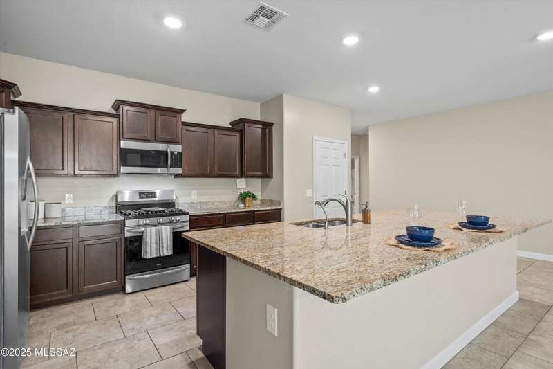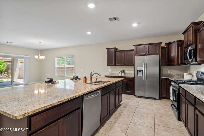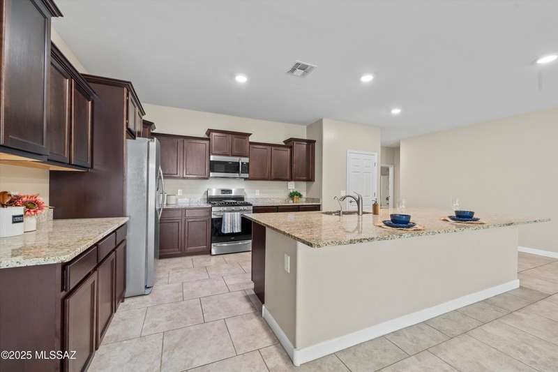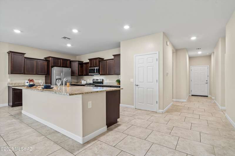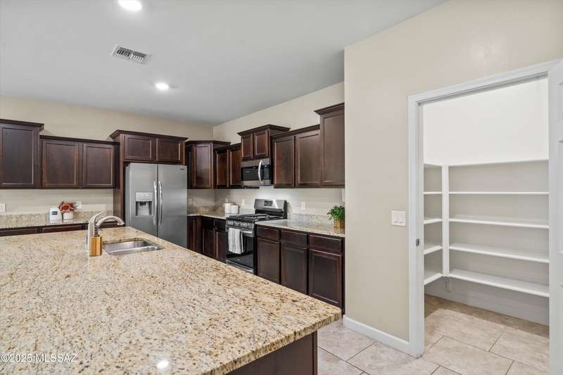 Step into this well-maintained 3 bed, 2 bath home with 1,862 sq ft of comfortable living space in the award-winning Vail School District. The open floor plan features easy-care tile throughout and a spacious kitchenwith rich mocha cabinets, granite countertops, stainless steel appliances, gas range, large island, and walk-in pantry. The private primary suite includes dual vanities, ample counter space, and a walk-in closet. Enjoy the beautifully landscaped backyard with a covered patio, low-maintenance turf, mature fruit trees, and raised garden beds perfect for relaxing or entertaining. Conveniently located near shopping, dining, and I-10 access.