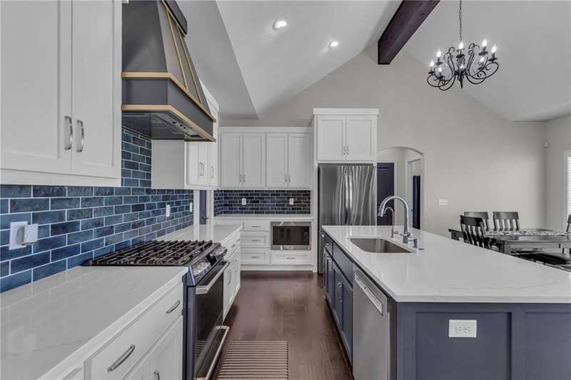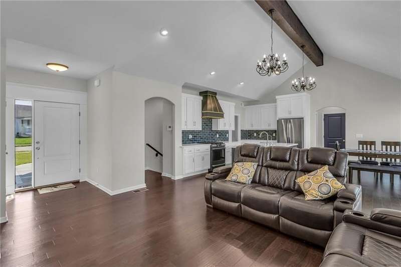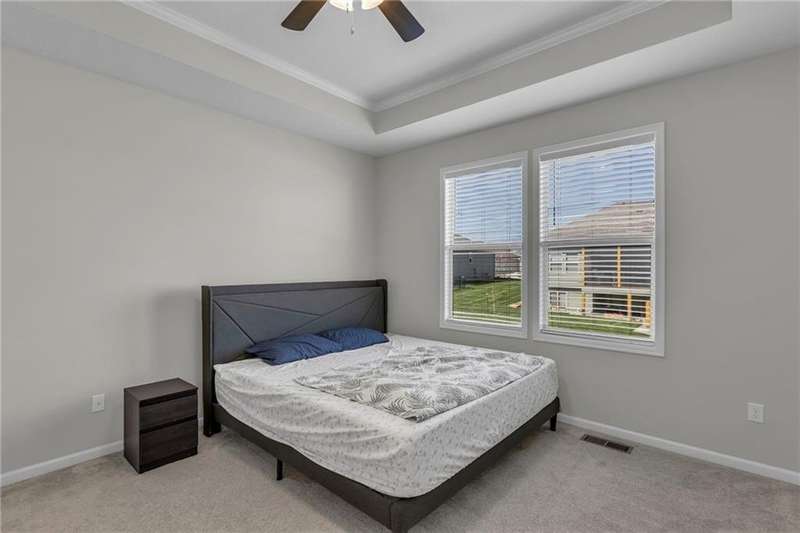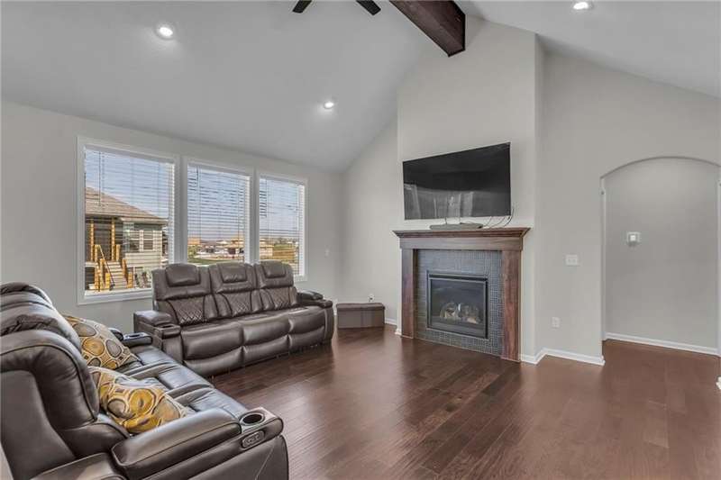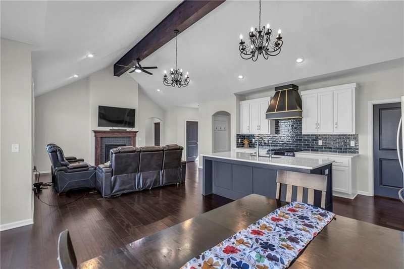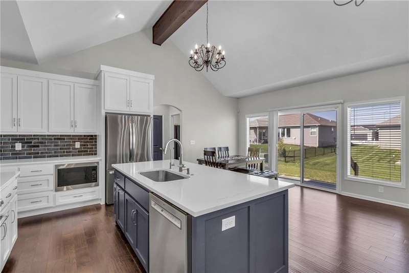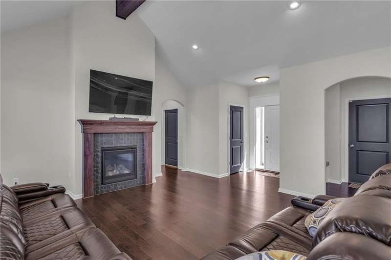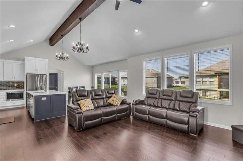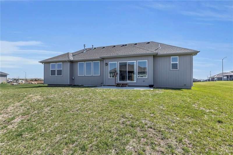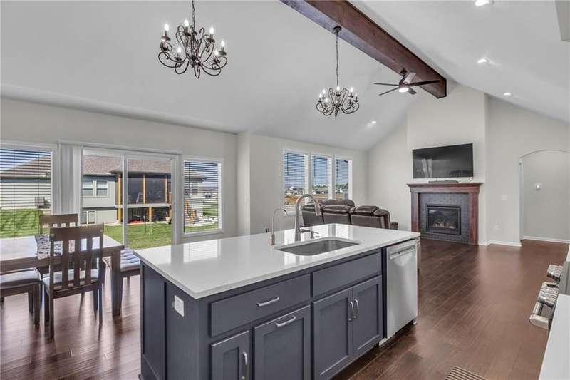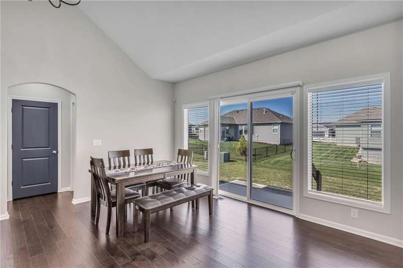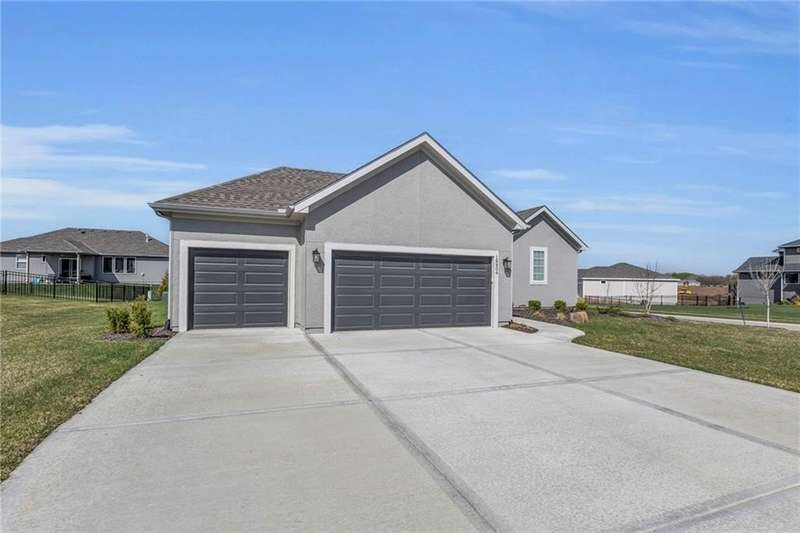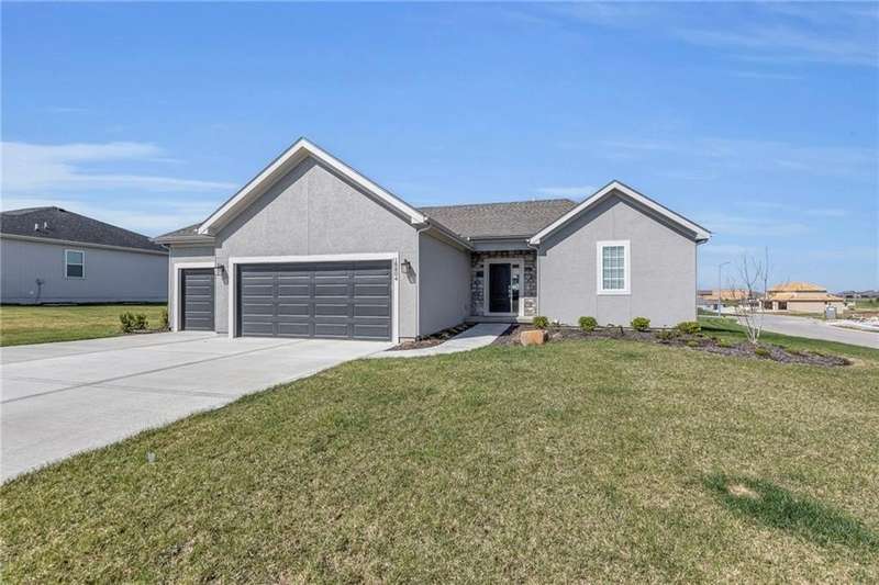 This functional Gianni Reverse plan is practically brand new and situated in the highly desirable Dayton Creek neighborhood. With over $47,000 in upgrades, you simply cannot find a better deal at this price! It features a magnificent cathedral ceiling and an expanded breakfast room that provides ample space for your needs. The main living areas showcase beautiful hardwood floors, while both the master and guest baths are finished with elegant tile. The finished lower level is a fantastic bonus, offering a theater room or playroom for kids, along with a third bedroom, a third bath, and a family room equipped with additional laundry hookups. You'll also appreciate the added conveniences of faux blinds, garage openers, and an irrigation system. The seller is ready to close quickly, making this a must-see. Dayton Creek boasts the best amenities in southern Johnson County, including a putting green, fitness center, pool, splash pad, pickleball courts, basketball courts, a picnic pavilion, a tot park, and scenic walking trails—plus an onsite elementary school. Don’t miss out on this incredible opportunity!