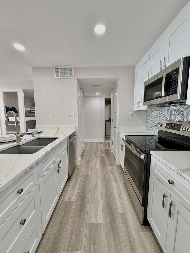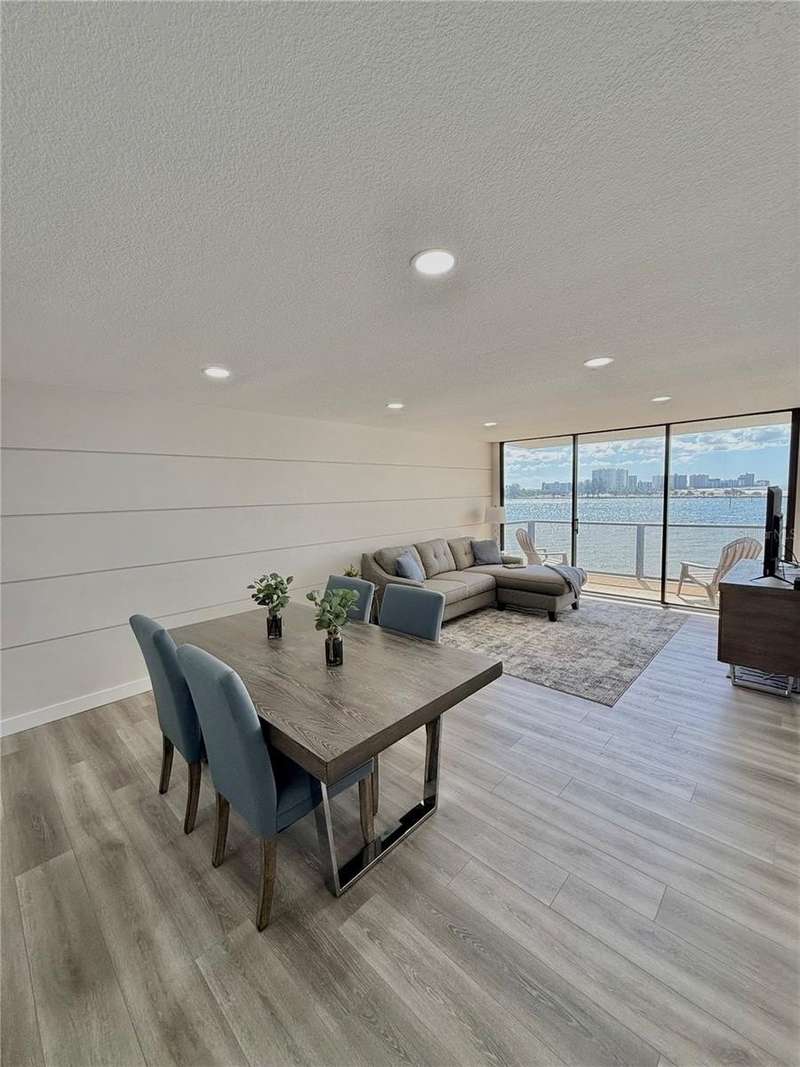 Under contract-accepting backup offers. Amazingly Breathtaking! is the only way to describe the panoramic views of this gorgeous waterfront condo. From the South & West Magnificent Gulf Of Mexico, Sand Key Shoreline and Clearwater Pass, you will spend your time enjoying the picturesque view watching the pirate ships and boaters passing through on their way out to the Gulf. Nestled on the powdery sand of South Clearwater Beach, this 2-bedroom 2 bath Beachfront condo has been updated and exquisitely designed with brand new furnishings. This home features brand new flooring, new ceilings, new lighting, new kitchen cabinets, new quartz countertops, new quartz kitchen sink, new appliances, new closets, new washer and dryer, new bathrooms, new AC, new doors, new paint, new furniture and our favorite, new precious bunk beds for very special guests. A perfect home for relieving stress after a hard day at the beach. Listen and watch the waves crash right below your balcony. You'll see dolphins, manatees, pirate ships, and so much more. The amenities include 24-hour security guards, a private garage parking space, shuffleboard, bike storage, a beautiful pool area and well-equipped fitness center, complete with sauna. A dynamic local scene offers an array of dining, shopping, and entertainment options, all within easy reach. This beachfront home offers a perfect blend of comfort, convenience, and luxury.