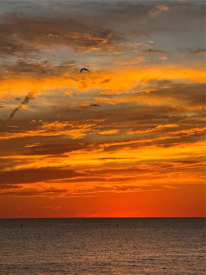 Amazingly Breathtaking! is the only way to describe the panoramic views of this gorgeous waterfront condo. From the South & West Magnificent Gulf Of Mexico, Sand Key Shoreline and Clearwater Pass, you will spend your time enjoying the picturesque view watching the pirate ships and boaters passing through on their way out to the Gulf. Nestled on the powdery sand of South Clearwater Beach, this 2-bedroom 2 bath Beachfront condo has been updated and exquisitely designed with brand new furnishings. This home features brand new flooring, new ceilings, new lighting, new kitchen cabinets, new quartz countertops, new quartz kitchen sink, new appliances, new closets, new washer and dryer, new bathrooms, new AC, new doors, new paint, new furniture and our favorite, new precious bunk beds for very special guests. A perfect home for relieving stress after a hard day at the beach. Listen and watch the waves crash right below your balcony. You'll see dolphins, manatees, pirate ships, and so much more. The amenities include 24-hour security guards, a private garage parking space, shuffleboard, bike storage, a beautiful pool area and well-equipped fitness center, complete with sauna. A dynamic local scene offers an array of dining, shopping, and entertainment options, all within easy reach. This beachfront home offers a perfect blend of comfort, convenience, and luxury.