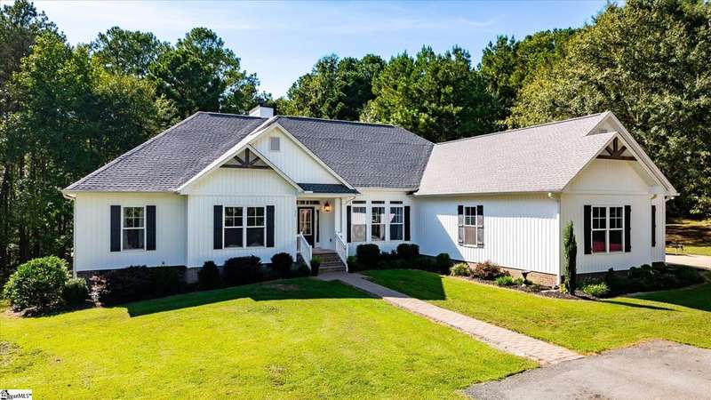 Welcome to 225 Meadow Brook Ln, your private paradise, a stunning 4-year-old, custom-built farmhouse nestled on 44 acres of serene, wooded beauty. Thoughtfully designed for comfort, style, and functionality, this 4 bed, 3 bath home offers the perfect balance of luxury living and peaceful seclusion, with no HOA restrictions and endless potential for homesteading, recreation, or a family compound. As you enter the long, winding paved driveway off Meadow Brook, you'll be transported into a natural retreat surrounded by towering trees and five natural springs that feed into different areas of the property. The heart of this estate is a beautifully crafted home featuring a two-car garage with potential for a workspace, pull-down attic storage, and additional storage closet just inside the back door. Inside, the charm begins the moment you walk through the front door. To your right, a spacious office or study offers an ideal work-from-home setup, while the left wing opens into a versatile game room, playroom, or bonus room space. The main living area features gorgeous hardwood floors, an open-concept design, and a floor-to-ceiling stone wood-burning fireplace flanked by custom bookshelves. A showstopper for cozy nights and elegant entertaining. The chef's kitchen boasts granite countertops, a large eat-at island, and stainless-steel appliances, including a double oven stove, dishwasher, microwave, and refrigerator. The expansive dining area completes this entertainer's dream. A barn-door, walk-in enclosed laundry room and a walk-in pantry with shelves lining the walls, add even more practicality. The primary suite is a luxurious retreat with dual walk-in closets, a spa-like ensuite bath featuring a double sink vanity with granite countertops, a garden tub, and a tiled walk-in shower with glass door. On the opposite wing, you'll find the second bedroom with its own ensuite bath and walk-in closet, while the third and fourth bedrooms share a generously sized hall bath and both include full walk-in closets. Outside, the possibilities are limitless. Envision adding a huge deck to the back of the home or a massive rock fire-pit area with a wood-fired pizza oven. Explore the cleared trails and roads, a 7-acre fenced area with small animal barn, and multiple clearings ideal for horses, cattle, goats, chickens or gardening. The property has already been timber cruised, offering potential for significant income. A 900 sq ft metal workshop on a concrete slab includes electricity, a 200-amp camper hookup, and water, with an additional 290 sq ft lean-to for equipment or animal shelter. Located just minutes from downtown Pickens and Pumpkintown, and a short drive to Table Rock State Park, Keowee and Jocassee Lakes, and countless hiking trails, this estate offers the perfect blend of privacy and accessibility. With Greenville only 30 minutes away via Hwy 183, you truly can have it all. Don't miss the chance to own this one-of-a-kind sanctuary where luxury living meets natural beauty and country living at it's finest. Schedule your private tour today!
