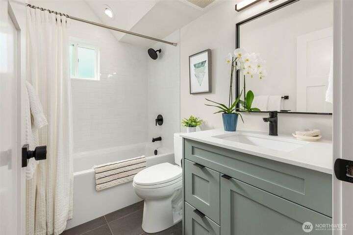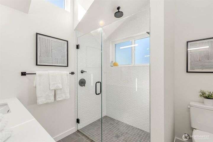 Exceptional 3 bed, 1.75 bath home in Seattle’s coveted North Beach community. Stylish and functional, it features modern design, high-end finishes, and cozy oak floors that bring warmth and elegance to every room. The smart layout offers generous storage and flexible living. A premium open-concept kitchen flows to a spacious, fully fenced yard with glimpses of the Sound—perfect for entertaining or relaxing. A main-floor bedroom adds convenience, while upstairs you'll find two more bedrooms, including a serene primary suite with vaulted ceilings and a large closet. Parking with EV charging station. Enjoy easy access to Ballard, Golden Gardens, Carkeek Park, and private community beach access—North Beach living at its best.