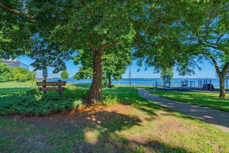 Desirable "Blair House Condos" - Experience the ease of Urban living. steps away from James Madison Park & Lake Mendota. Well designed Unit with bright open kitchen to dining, living room and relaxing screened porch. One bedroom suite includes spacious walk-in closet, vanity with 2 sinks, tub and shower. Convenient, half bath and In-unit newer - stackable "LG" Washer/Dryer. If you are looking to BBQ or just relax take advantage of the community courtyard with patio and grills. Walking distance to the State Capital, University of WI Campus, Farmers Market, Breese Stevens Field, The Sylvee, fabulous restaurants, coffee shops and so much more. Underground parking and storage.