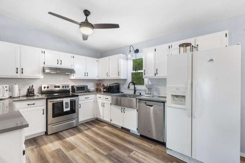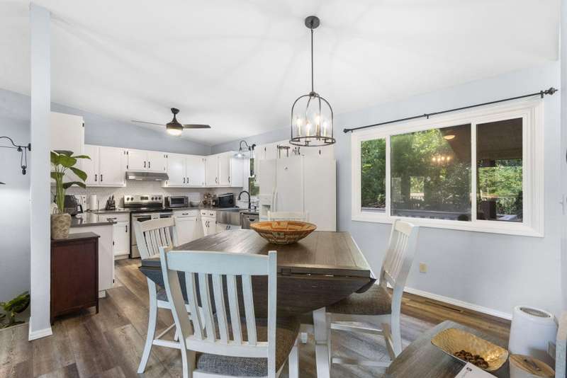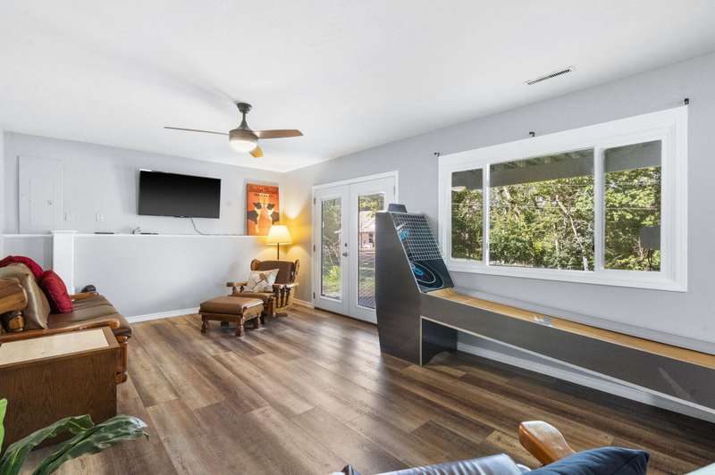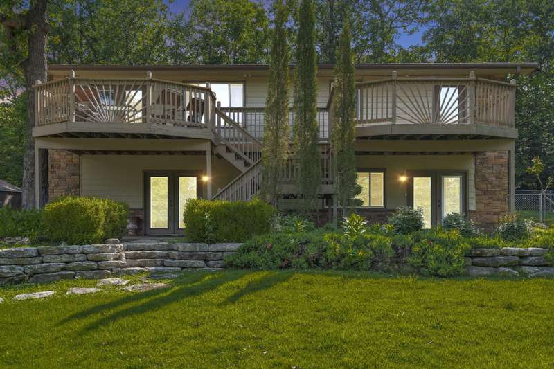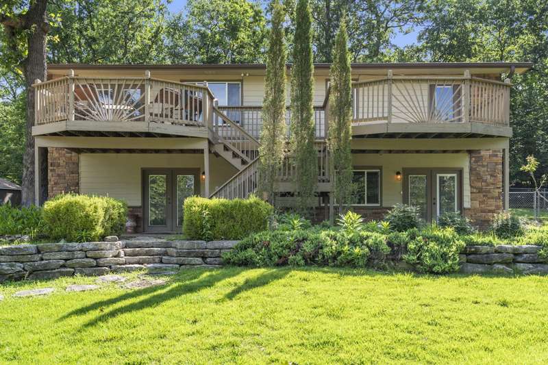 ***Price Improvement*** Seller is very motivated!! Welcome to this exceptional Table Rock Lake property, ideally positioned on a beautifully maintained, fully irrigated corner lot. The grounds are thoughtfully designed, featuring a sand volleyball court, a tranquil water garden, a storage shed, and vibrant, mature landscaping that offers both privacy and charm.This meticulously updated home offers a desirable split four-bedroom, two-and-a-half-bath floorplan, perfectly suited for either a weekend retreat or comfortable full-time living. The main level showcases an open kitchen with new Quartz countertops, a tile backsplash, updated appliances, and updated lighting and fixtures. Seller is also offering a 1st year home warranty for added peace of mind. The adjacent dining area provides direct access to a private backyard patio, fenced for all the fur babies!!The spacious living area opens to the upper deck, offering partial lake views year-round and a full, lake view during the winter months. The main floor includes three bedrooms, including the primary suite with an updated half bath, and a guest bath featuring an impressive tiled walk-in shower.The lower level is designed for entertaining and features a 4th bedroom, a true Master suite, w/fully updated second full bath with soaker tub, also a large storage area downstairs. This remarkable property offers the perfect blend of peaceful lake living and modern comfort. 3rd party 10x24 boat slip on 8 slip community dock a 5 min golf cart ride away add'l $65,000.