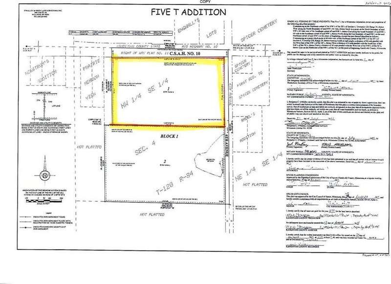 This lot is bordered by Co Rd 10 leading into the city of Spicer. Prime development land or prime for storage facilities.