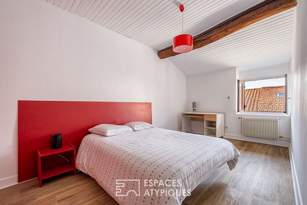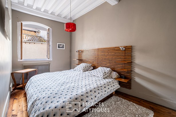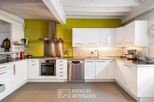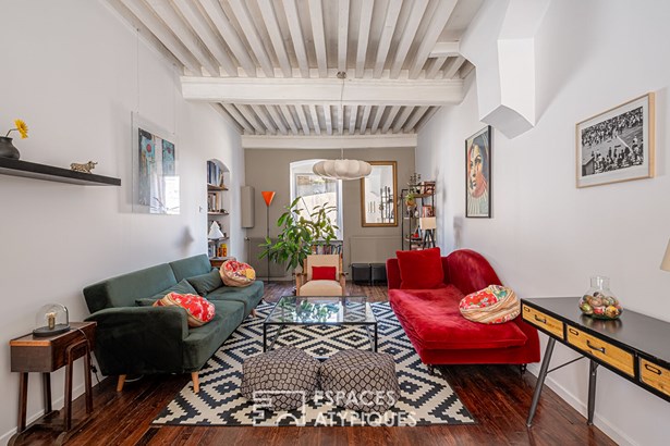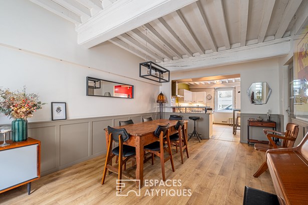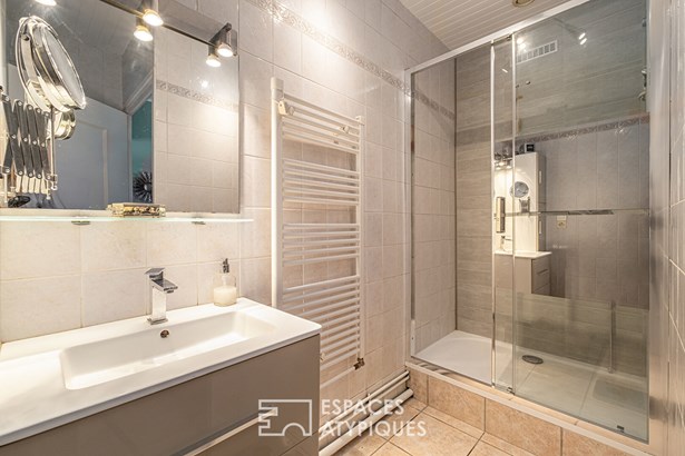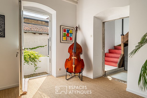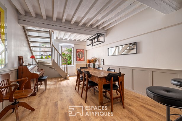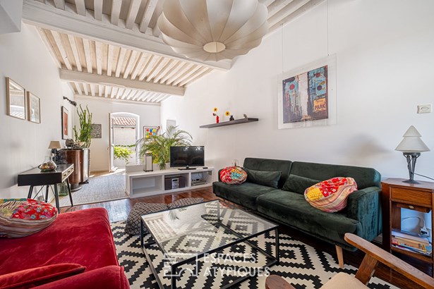 From the entrance, the tone is set with a hall distributing a beautiful fully equipped kitchen open to the dining room, offering direct access to the outside for moments of conviviality in complete privacy. A laundry room completes this level. Upstairs, the living room bathed in light opens onto the interior courtyard thanks to a staircase.