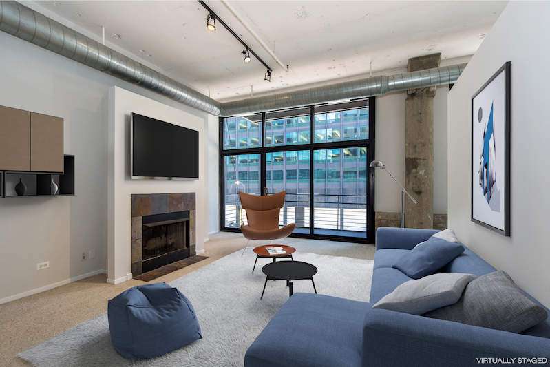 Step into sophisticated city living with this beautifully updated, 1,030 sq. ft. condo in the heart of West Loop Gate. As one of the largest one-bedroom layout in the building, this home is designed for comfort and style. Imagine starting your day on the huge private balcony, sipping coffee as the sun rises, or ending your evening with friends against the backdrop of the city lights. Inside, the showstopper kitchen has been fully remodeled with sleek shaker-style cabinetry, light granite counters, stainless steel appliances, and a stylish tile backsplash, making it perfect for both everyday meals and entertaining. The bright and inviting living area features 11' 7" soaring high ceilings and a wall of windows that frame stunning city views. On cooler nights, a cozy fireplace provides the perfect ambiance. The king-sized, fully enclosed bedroom is a true retreat, offering a generous walk-in closet and another full wall of windows. The updated, spa-like bathroom includes a dual-sink vanity and a deep soaking tub. Practical features include convenient side-by-side in-unit laundry and ample storage. Best of all, a heated garage parking space and a storage unit are included in the price. Located just steps from the area's best dining, shopping, and transit, this is a must-see West Loop home that offers both luxury and convenience.