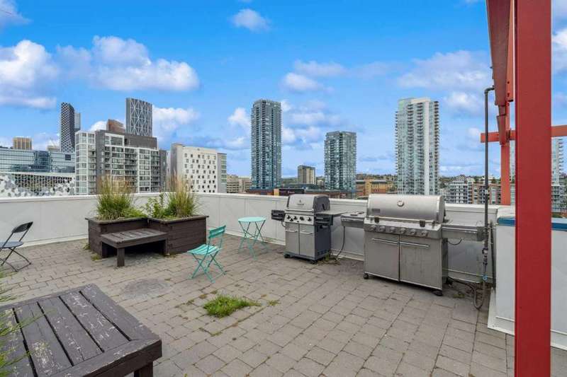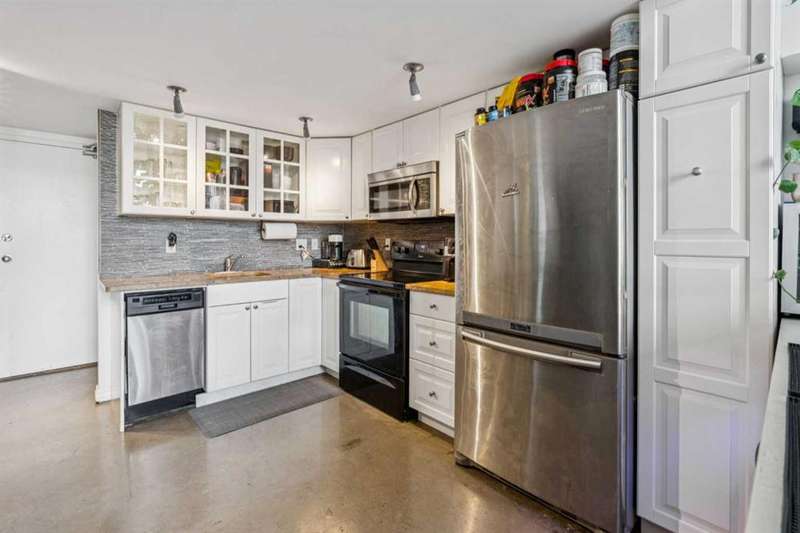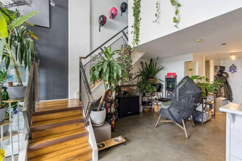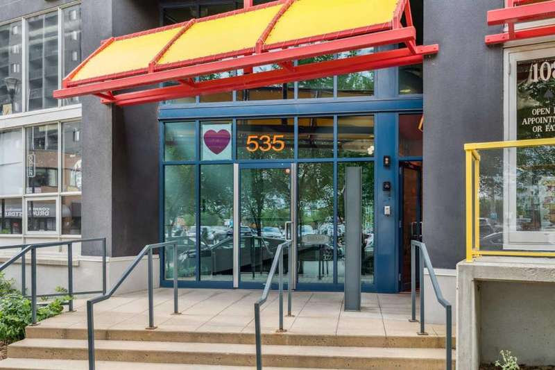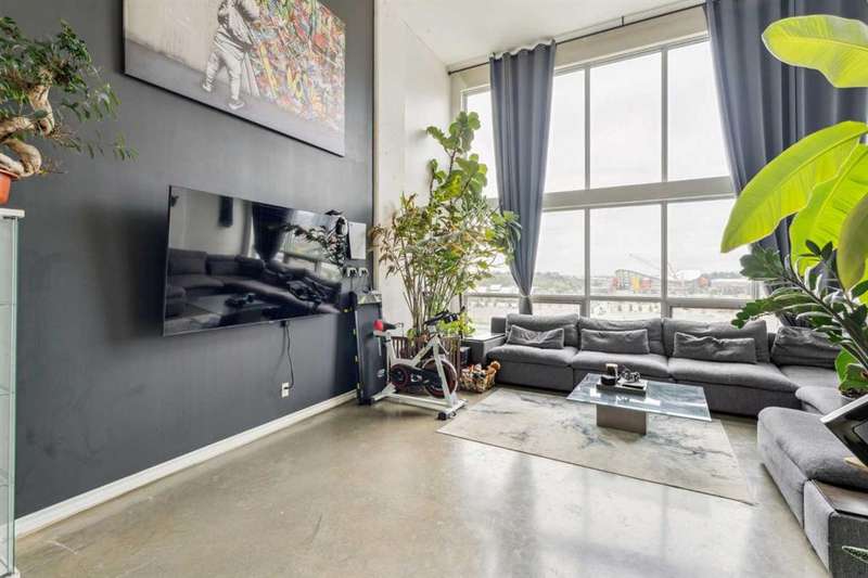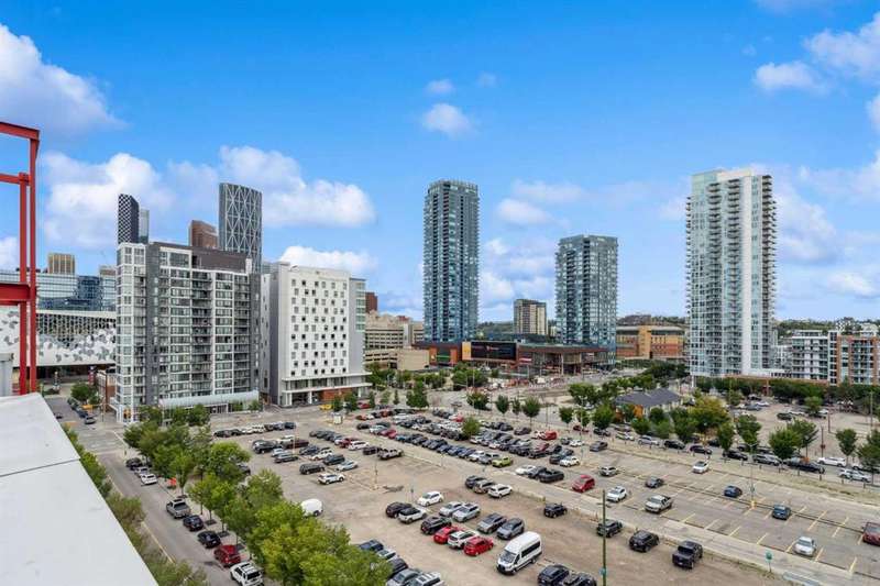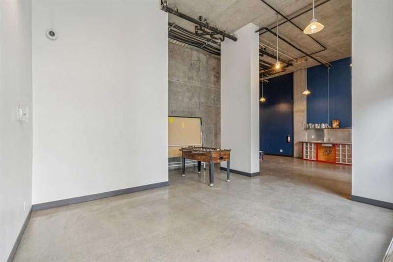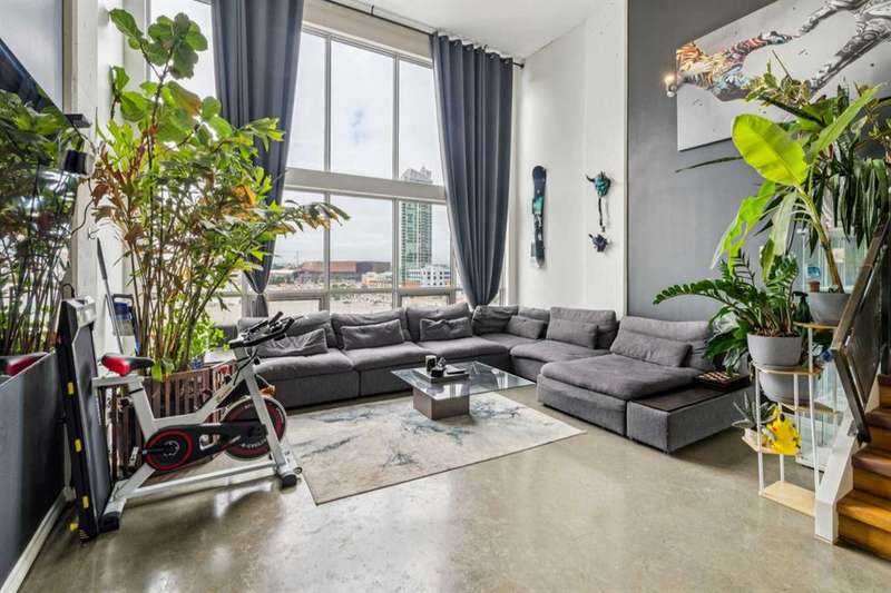 Welcome to Orange Lofts, where urban style meets unbeatable location. This spacious top floor loft offers over 800 sq ft of open concept living, complete with 16 foot ceilings and a striking south facing wall of windows that floods the space with natural light while showcasing views of the new arena. Designed with an industrial flair, this home features polished concrete floors and walls and a flexible open layout, perfect for both everyday living and entertaining. The sleek kitchen offers ample workspace and flows seamlessly into the living and dining areas, while the loft bedroom overlooks the airy main floor. Enjoy the convenience of in suite laundry Additional features include one titled underground parking stall and access to the building’s amenities in one of Calgary’s most vibrant downtown locations. Steps from the river pathways, dining, nightlife, and the excitement of the arena district, this loft offers a rare blend of style, size, and location.