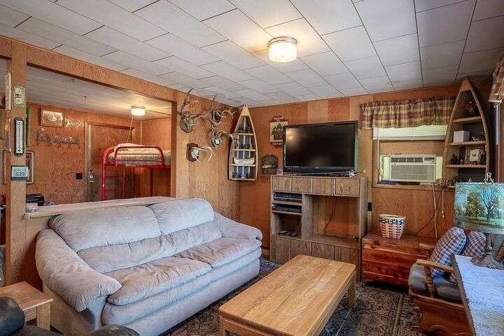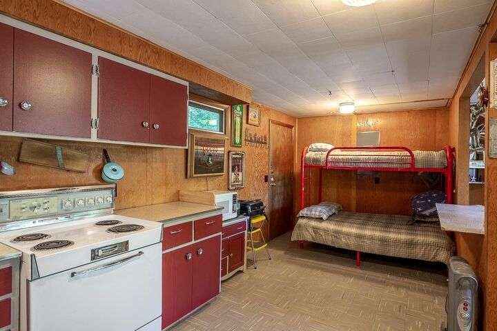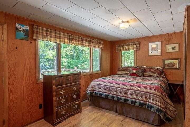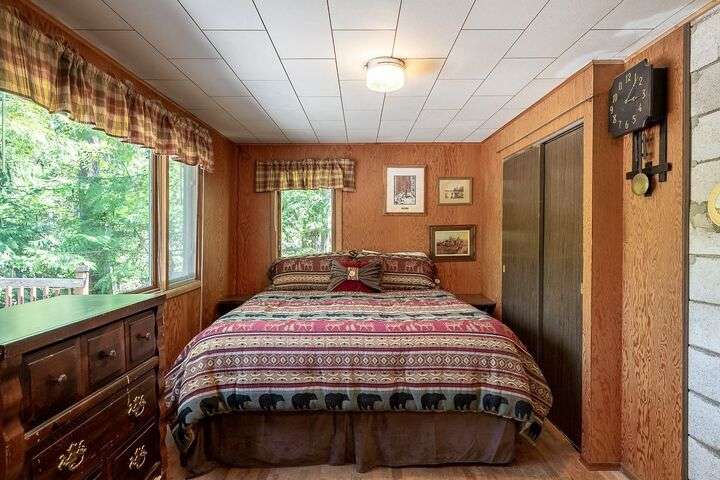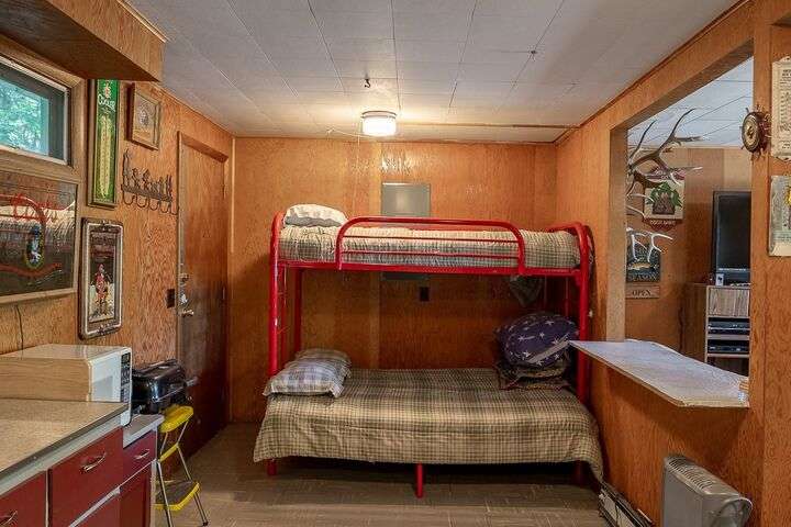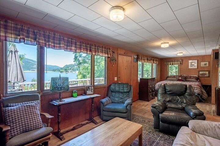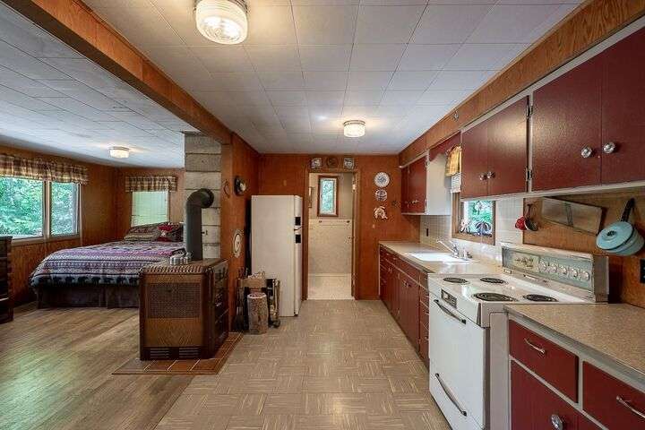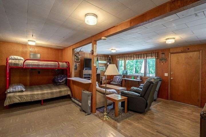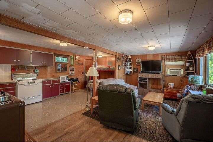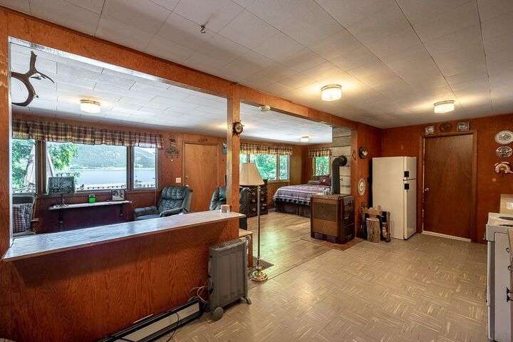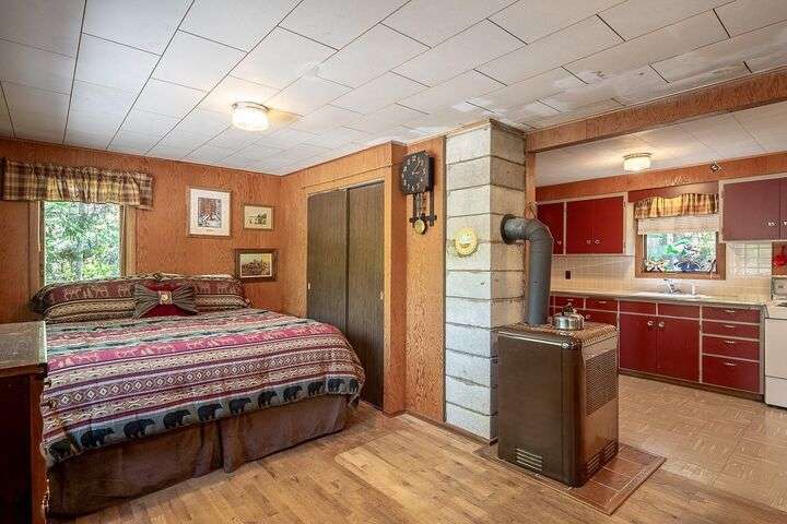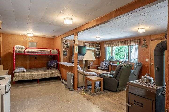 RARE FIND - PREMIUM SIZED PROPERTY & FRONTAGE ON DEEP LAKE! This secluded retreat boasts an expansive 1.6 acres and 138 feet of coveted lakefront - among the most generous land and water frontage available on the lake. Charming 1956 cabin on private treed acres with pristine lakefront. Open floor plan features 1 bed/1 bath, great room, kitchen with dining area, plus expansive composite deck showcasing stunning lake views and a natural spring that feeds this beautiful property. Recent updates include electrical panel (2005) and metal roof (2008). Durable 35' L-shaped dock with PWC port and boat slip ready for your watercraft. Perfect for creating lifelong family memories - bring your boat, skis, and tubes for endless summer fun on beautiful Deep Lake!
