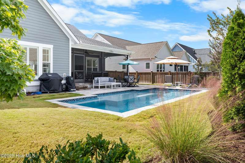 This home has it all in RiverLights- featuring a whole house generator AND a new in-ground, temperature controlled pool, with lap lane, for year-round swimming. Built by Trusst in 2022 and upgraded to match the Roanoke Coastal model, this home is a must see! The location is prime- just a block from the walking bridge which leads to the Lake House & Amenities, and it's nestled in a quiet pocket of the neighborhood known as ''The Loop.'' Upgraded finishes include chefs' kitchen with Kitchen-Aid appliances, a five-burner gas cooktop with downdraft, under cabinet lighting, premium cabinetry and an accent island with storage on all sides. The primary bedroom features an en suite bath that includes shower w/ tile surround to ceiling, frameless glass door, and custom walk-in closet. A main-level office doubles as a guest bedroom with a large closet and access to a full bath. The open-concept living area flows to a tiled generous screened porch through a three-panel lanai slider, creating seamless indoor-outdoor living. Upstairs, two spacious bedroomseach with a walk-in closetshare a bath; and walk-in attic storage provides easy access. This home is truly move in ready and will convey with all appliances. The outdoors is a true oasis with fully fenced professionally landscaped yard with two gates. Natural travertine stone surrounds the pool and patio area. An outdoor shower with teak mats provides convenience after the beach before hopping in the pool. Community amenities include clubhouse, fitness center, saltwater pool, playgrounds, parks, dog park, and upcoming pickle ball. Trails, sidewalks and streetlights throughout the neighborhood promote an active lifestyle. (HOA: 6-month rental minimum.). Schedule to see this home today!