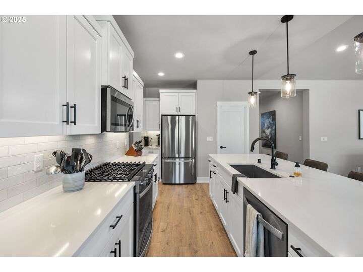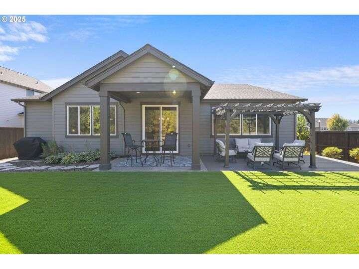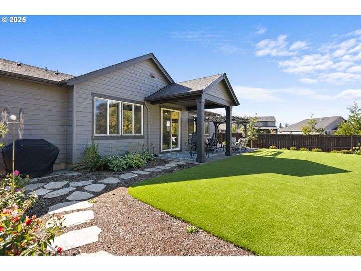 Gorgeous south facing home in desirable Austin Heritage. This 4 bedroom 2 1/2 bath home has vaulted great room, large kitchen with dream quartz island, gas SS appliances, soft close drawers and more. Split bedroom layout with primary privately located at back of house with large bathroom which boasts walk-in shower and stand alone tub, dual sinks in large vanity and generously sized walk-in closet. Large beautifully landscaped backyard (over $50k) turf, gazebo, covered back patio all opening to greenbelt. 3 Car Garage. HOA includes pool, clubhouse and front yard maintenance!