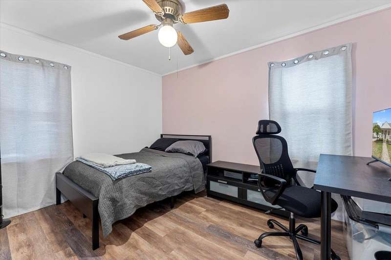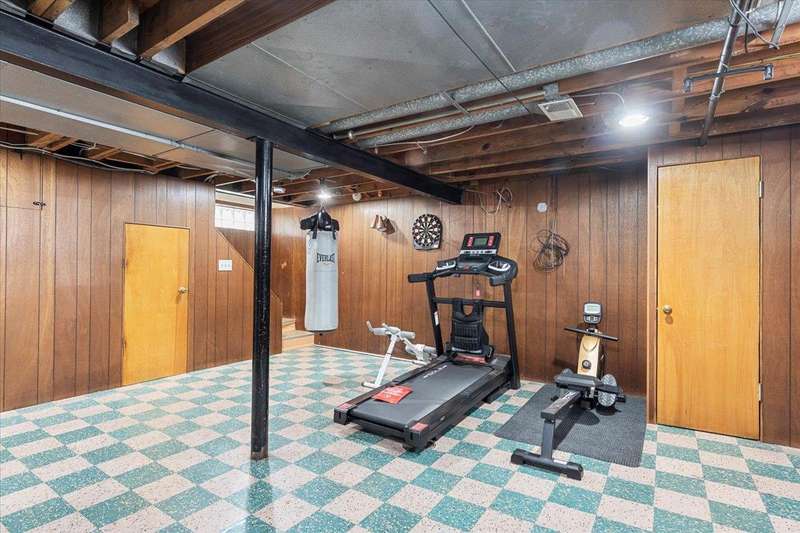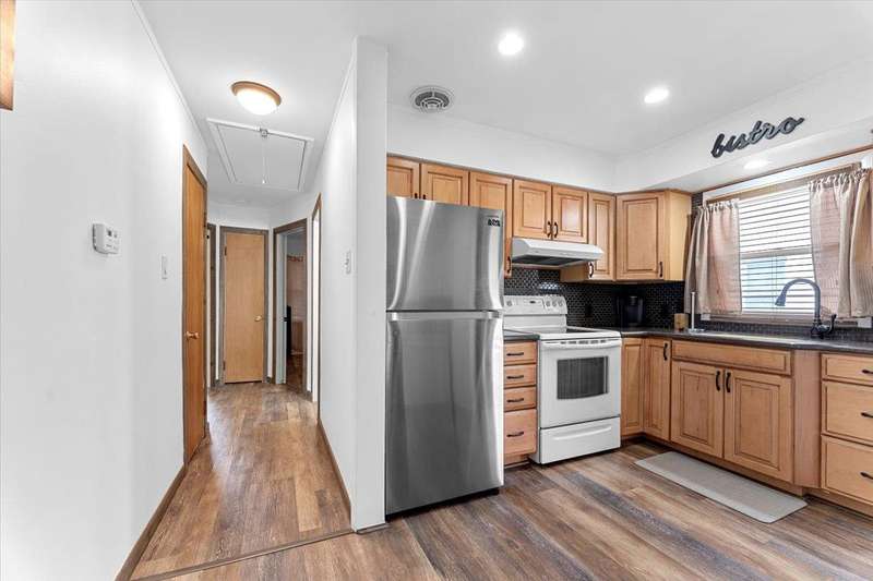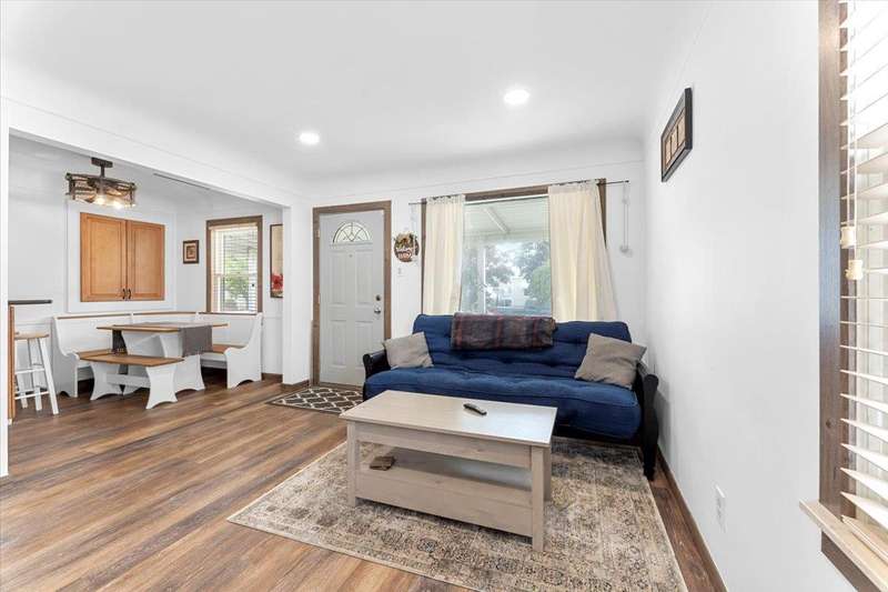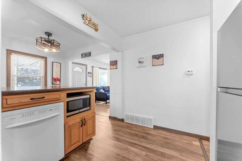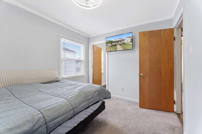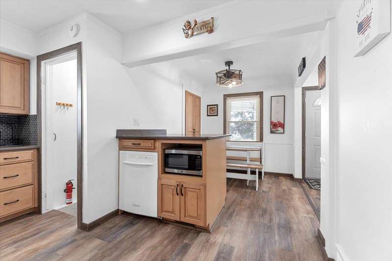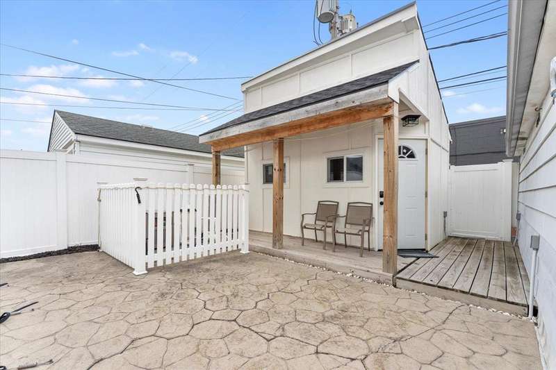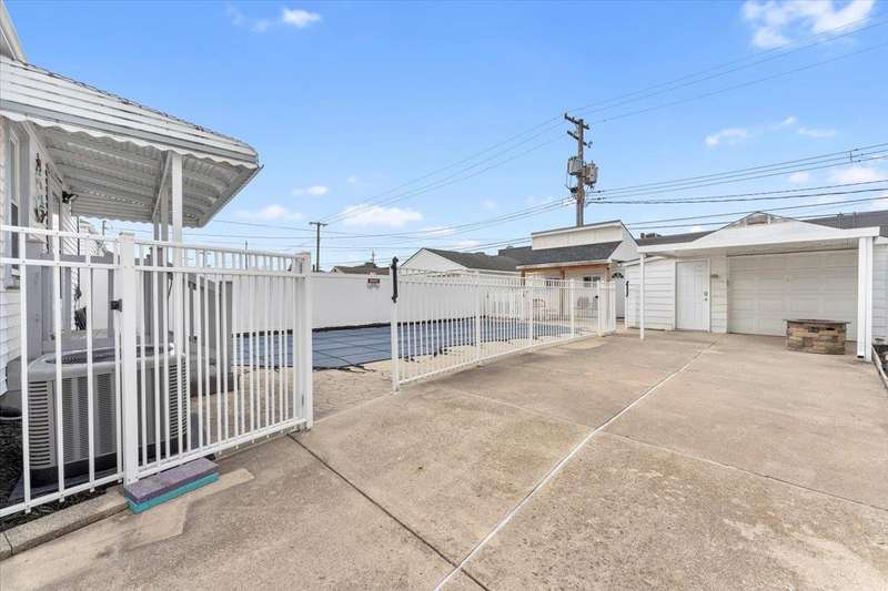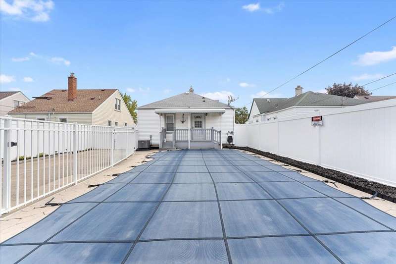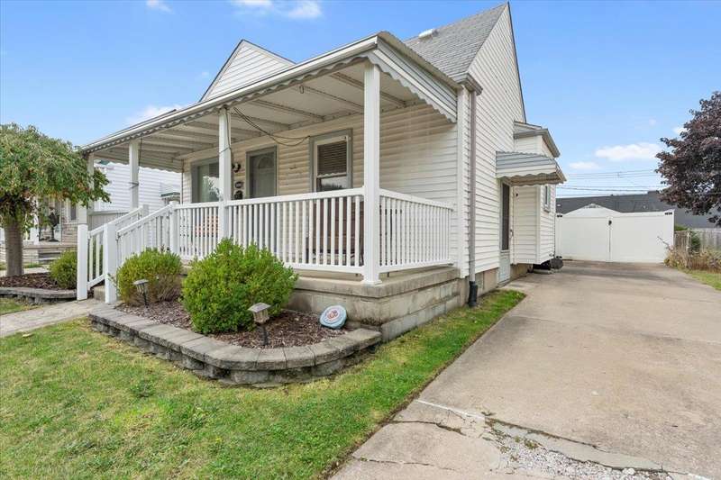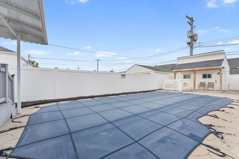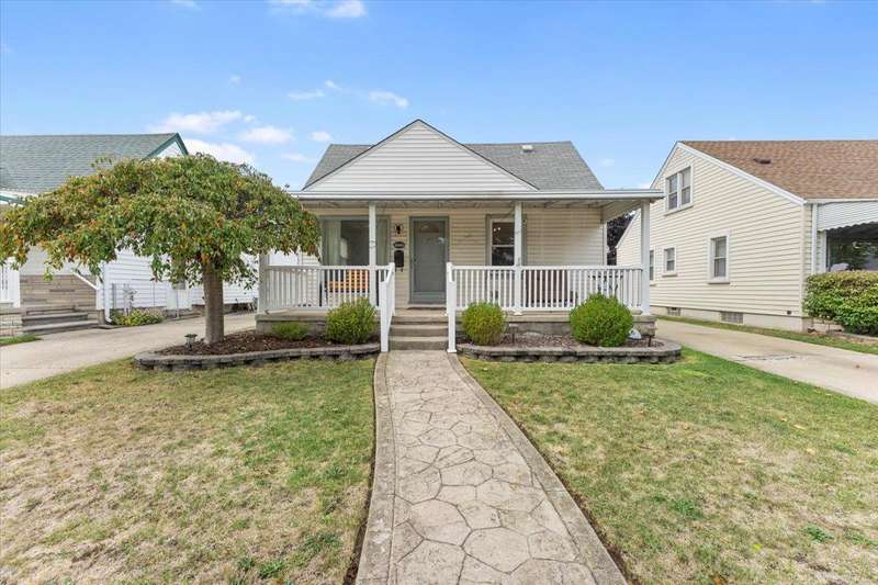 This Wyandotte bungalow has been modified to provide a unique space. Once a 3-bedroom, it is now a 2-bedroom with the former 3rd bedroom converted to an ensuite primary full bathroom. There are 2 full bathrooms on the main floor. But that's not all! The hallway closet is converted to accommodate a stackable washer/dryer with hook up for a first floor laundry if the buyer chooses. The flooring has been updated to luxury vinyl plank on the main floor with newer carpeting in the 2nd bedroom. The basement is finished and the perfect spot for watching the game with friends. The backyard is legendary - with an inground pool and cabana building with a bar, this is the ultimate spot to entertain friends all summer. The HVAC and hot water tank (2022). The 1.5 car garage roof (2023), privacy fence and covered back porch add to the easy maintenance and enjoyment of the space. The pool is now closed but a summertime photo is included. Buyer to assume the remaining City of Wyandotte repairs, please see the attached report for those items and escrow amount.