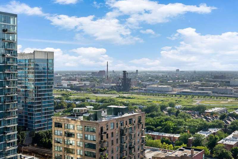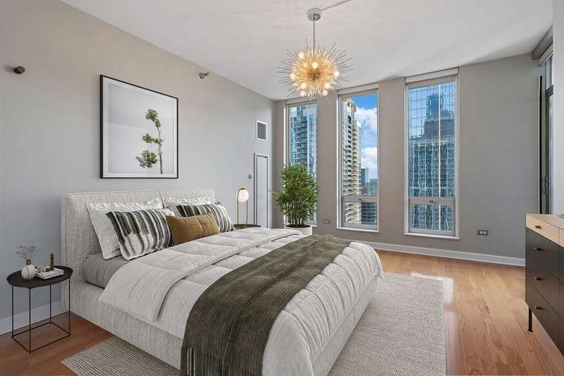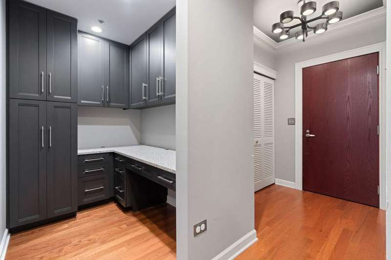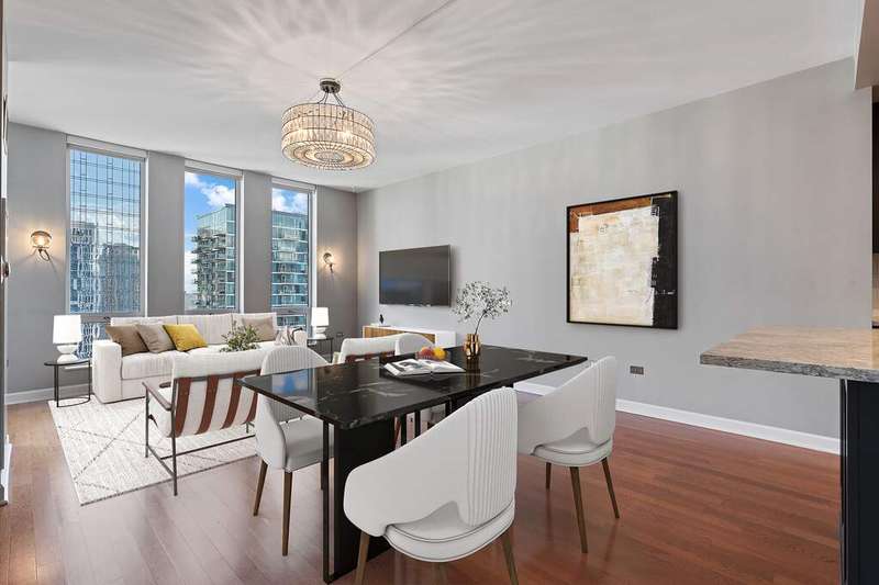 Upgraded and move in ready 2bed + den, 2bath residence in a highly sought after full amenity building in prime South Loop location. Hardwood floors flow seamlessly through out the home which features an an open floor plan to creates an inviting, seamless flow. The spacious, south facing light filled living/dining area opens to a large private balcony with city and sunset views, perfect for grilling, entertaining, or unwinding outdoors. The updated kitchen boasts sleek dark cabinetry, granite countertops with a breakfast bar, stainless steel appliances, and modern lighting. The king-size primary suite offers hardwood floors, balcony access, a walk-in closet with custom organizers, sophisticated lighting, and a large bathroom with a dual sink vanity with granite counters, glass enclosed shower plus separate tub. The second bedroom features sliding doors, a Murphy bed and access to the balcony. A dedicated office nook with custom cabinetry and a built-in desk provides the ideal work from home setup. Additional highlights include in-unit laundry and garage parking available for $35K. Building amenities include 24-hour door staff, a sundeck, outdoor pool, fitness center, party room, and more. Unbeatable South Loop location just steps to Grant Park, Museum Campus, CTA, the lakefront, and an array of shops, dining, and entertainment options.
