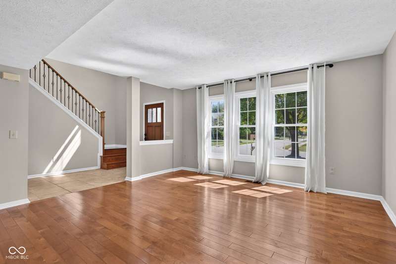 Updated 4 bed, 2.5 bath Carmel home with gorgeous curb appeal, large 2-story foyer with lots of natural light, finished basement with storage and 2-car garage. Open floor plan features beautiful hardwood floors on main level, updated eat-in kitchen w/SS appliances, and bright window that overlooks inviting outdoor living space with fenced yard, outdoor patio, screened porch, mature trees for privacy. Upper-level highlights spacious primary suite & updated baths. Newer HVAC, roof, windows, & more. Carmel Clay schools.