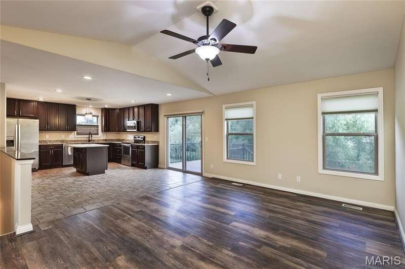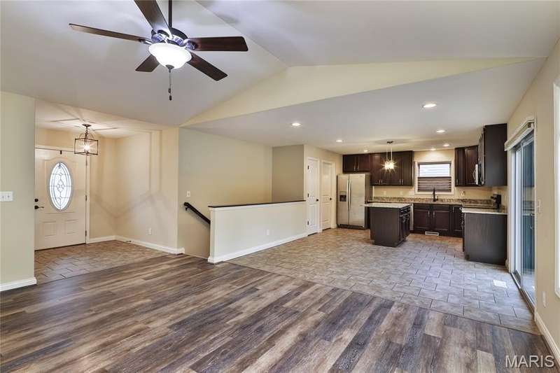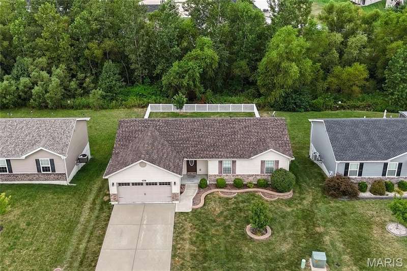 Perfect Ranch Retreat! Nestled on a semi-private lot with tree-lined views. This meticulously maintained home offers both privacy and convenience. Less than 10 years old, it boasts new carpeting ('25) in all three bedrooms and stairwell, fresh paint ('25) and is move-in ready. Step inside to discover an open-concept layout filled with natural light. The foyer leads to a spacious family room, a bright breakfast area, and a well-appointed kitchen featuring a center island with breakfast bar, expansive counter space, and easy access to the main floor laundry and attached garage. And yes, the backyard is fully fenced—perfect for your littles and fur babies to play safely while you relax or barbecue on the composite deck. Unwind in the primary suite, complete with a private en-suite bath featuring a double vanity, large walk-in shower and window for natural light. The walk-in closet won’t disappoint. Two additional bedrooms offer ample space and are freshly updated with new carpet and neutral paint! Need more space? The framed walkout lower level is ready for your finishing touches—ideal for adding a 4th bedroom, home office, recreation area and room to spare for storage. Large windows flood the space with light, adding to its potential. Professionally cleaned and carefully prepared for market and minutes from Founders Park, Boulevard Park, Quail Ridge Park, shopping, dining, and multiple commute routes. Don’t miss your opportunity—schedule today! Roof ('23) HVAC and Windows ('16)