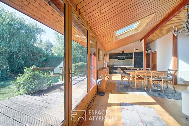 25 minutes from Fontainebleau and 1h15 from Paris, located in the town of Misy-sur-Yonne, in the residential and secure Les Forestieres du Lac area, this wooden house offers a surface area of 63.15m2 Loi Carrez built on a plot of 640m2 . Out of sight, enjoying a breathtaking view from its terrace overlooking the garden and direct access to the lake by a canal, this haven of peace, out of time offers an exceptional way of life which you can enjoy all year round, for weekends and/or holidays. The house opens into a warm living room of 40m2 with its fitted and equipped kitchen and its open wood-burning fireplace, to warm up winter evenings. Facing the outside, this property has incredible charm and a contemporary spirit underlined by a high ceiling and numerous openings allowing natural light to penetrate from all sides. Naturally, our eyes go outwards to discover a landscaped garden with its terrace overlooking the garden, a pontoon and the watercourse. On the night side, two beautiful bedrooms share a bathroom. A laundry area adjoining the property enhances the whole The volumes and layout of this house as well as its privileged location make it a favorite for everyday life or for a second home. The area also offers a private beach, six tennis courts, table tennis, playground, hiking or mountain biking around the lakes:Not to mention the joys of swimming, canoeing, paddleboarding and fishing. ..also available a clubhouse. Although part of a co-ownership of 352 lots managed in free union assembly Monthly co-ownership charges: EUR163/month. Shops nearby. 33km from Fontainebleau and 99km from Paris by the A5 motorway. 31km from Sens/3km from Villeneuve-La-Guyard with train station and access to Gare de Lyon in 1h10 ENERGY CLASS: E / CLIMATE CLASS: B Estimated average amount of annual energy expenditure for standard use established from the prices of the energy of the year 2021 between EUR1060 and EUR1480.