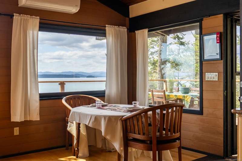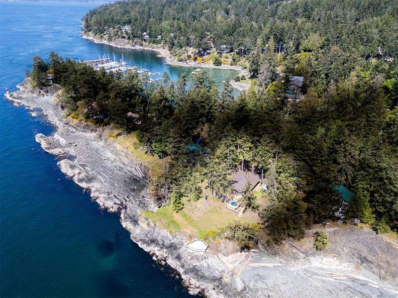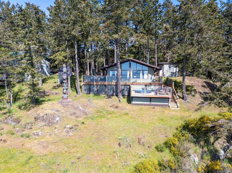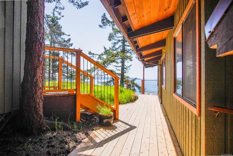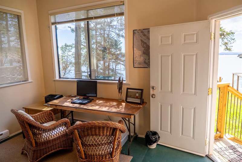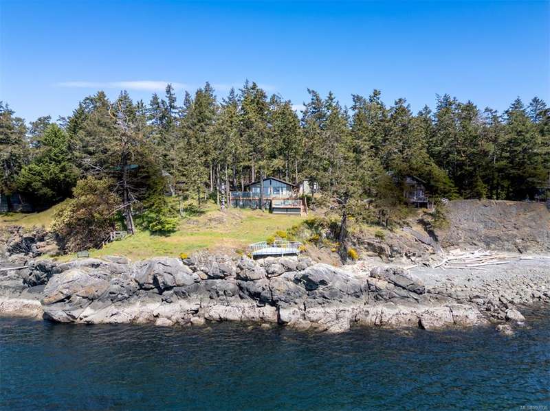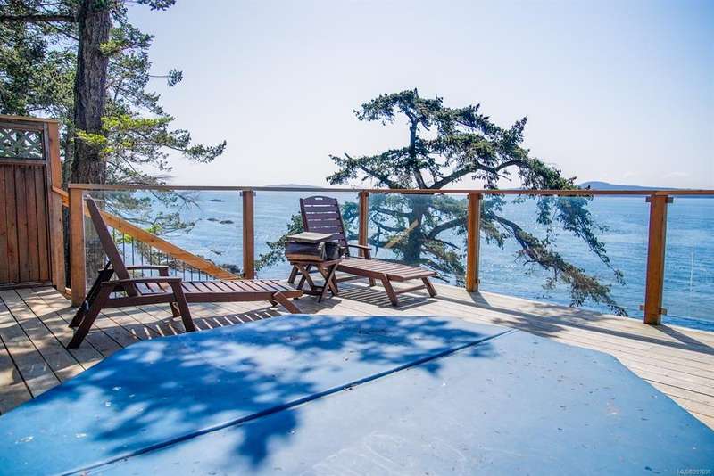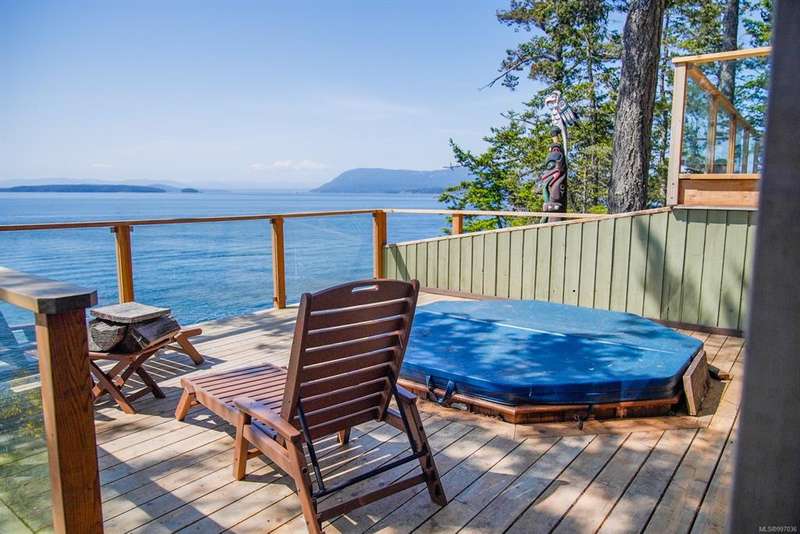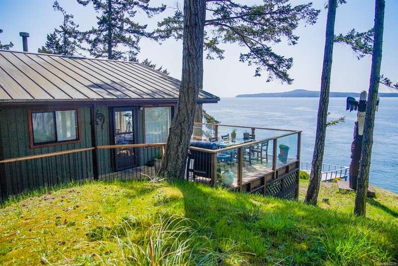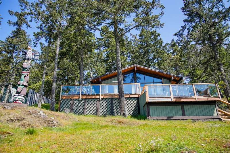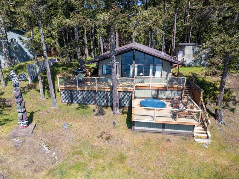 Amazing and Magical Oceanfront Property! Breathtaking views from the over 500 square feet of decks with southern exposure. The decks contain BBQ and eating area, hot tub deck and an incredible deck built over the rocks. Stroll down to a private beach, a great place to launch your kayak. The house is an updated West Coast home with vaulted ceilings, huge windows so that nothing can impede your views. There are two bedrooms and two baths, as well as a bunky or office. The totem pole was carved by renowned carver and artist, Tony Hunt, and creates a serene space, where nature and art collide. The one car garage is convenient for storage or garage, and there is also a huge carport, great for the RV or boat. With Thieves Bay Marina across the street for inexpensive year round moorage, it can not get any more convenient than this! The house is turnkey, and some furnishings can be included. Measurements approximate, and buyers should verify if deemed important.
