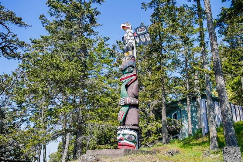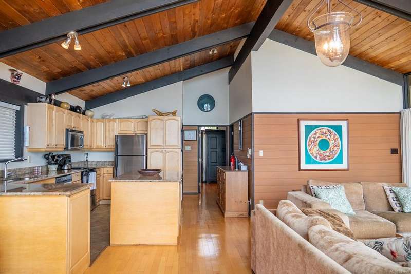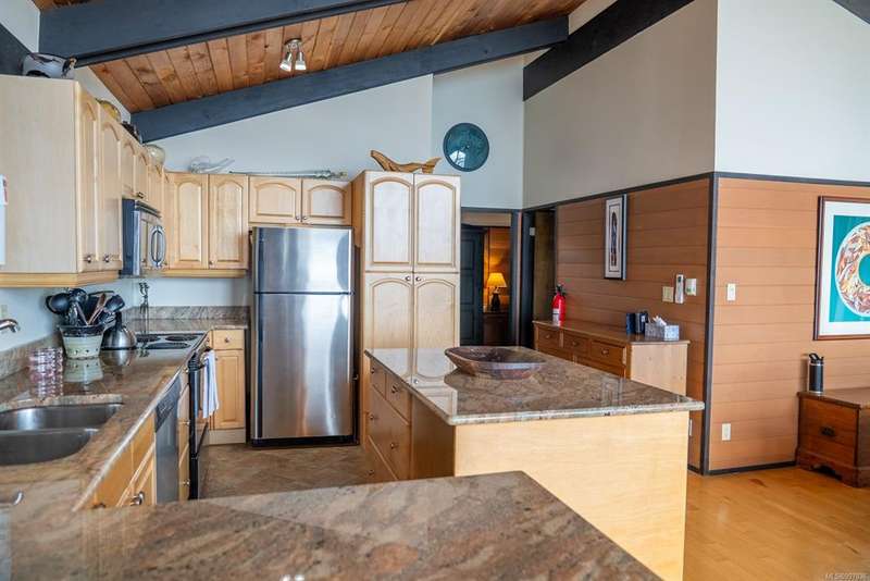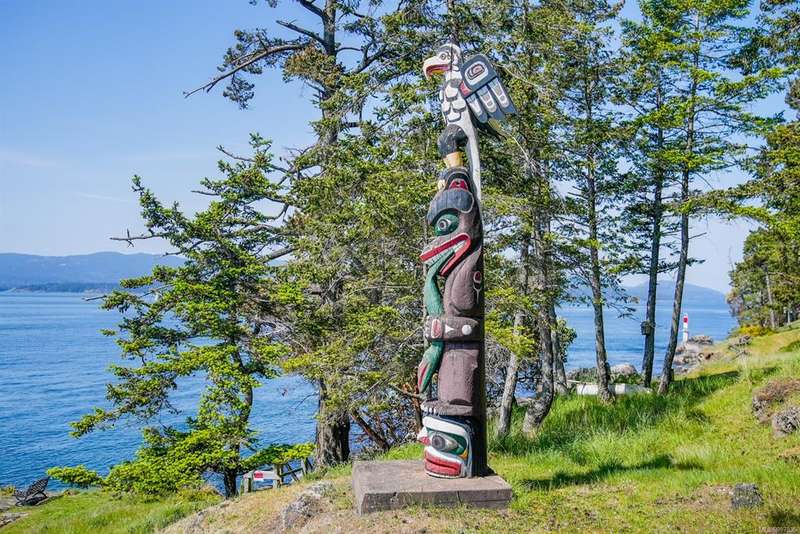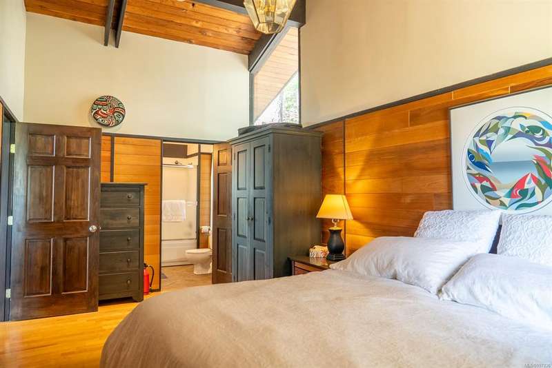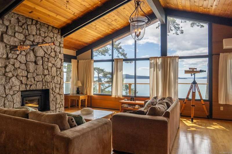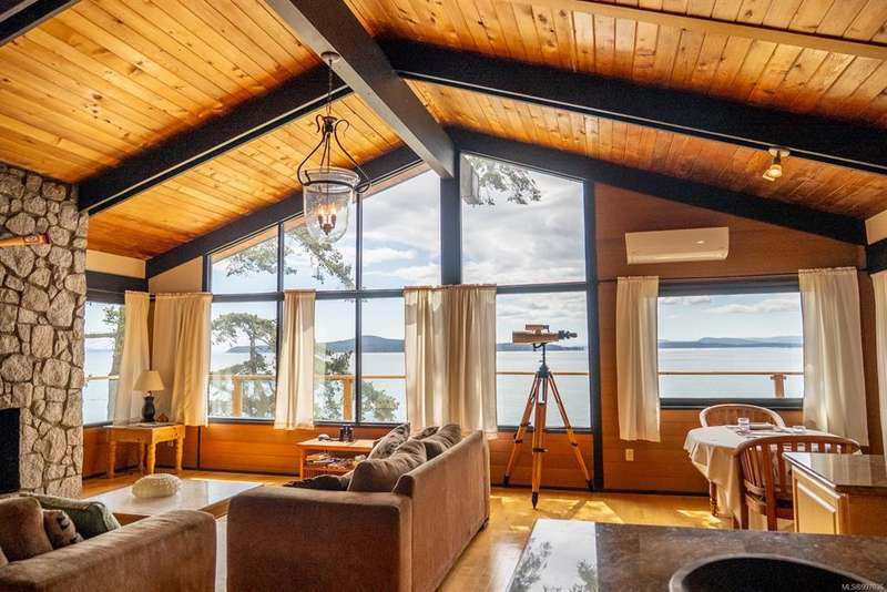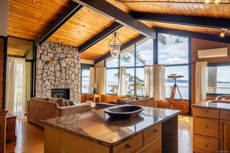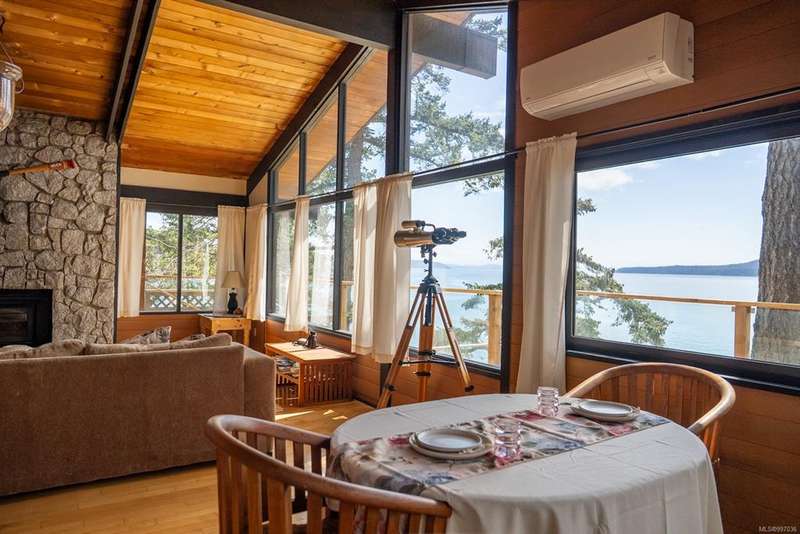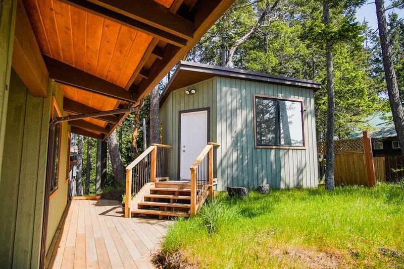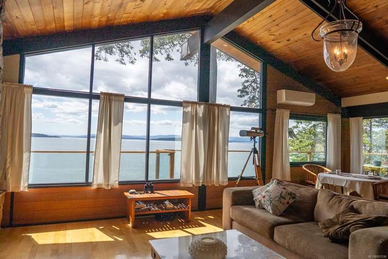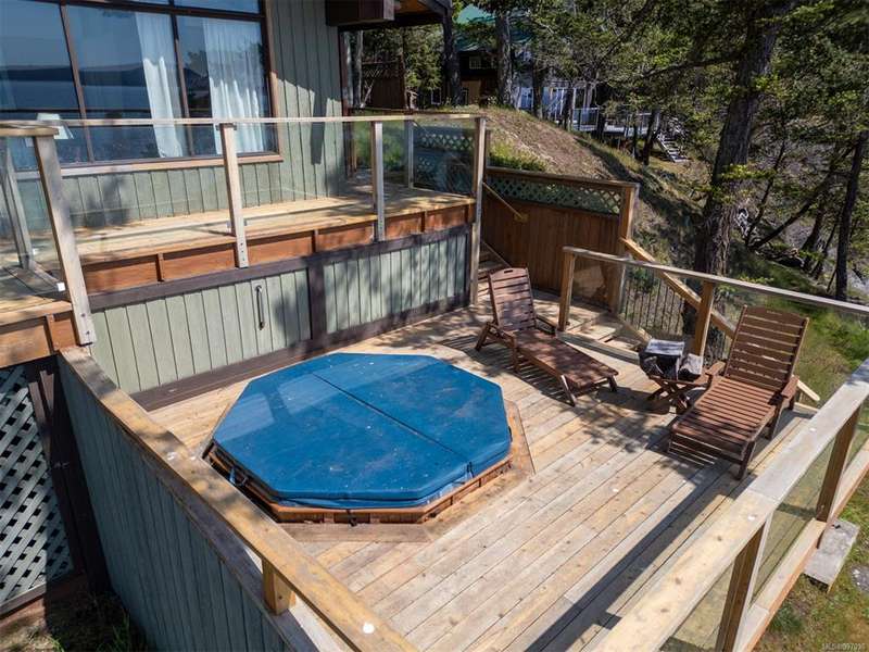 Amazing and Magical Oceanfront Property! Breathtaking views from the over 500 square feet of decks with southern exposure. The decks contain BBQ and eating area, hot tub deck and an incredible deck built over the rocks. Stroll down to a private beach, a great place to launch your kayak. The house is an updated West Coast home with vaulted ceilings, huge windows so that nothing can impede your views. There are two bedrooms and two baths, as well as a bunky or office. The totem pole was carved by renowned carver and artist, Tony Hunt, and creates a serene space, where nature and art collide. The one car garage is convenient for storage or garage, and there is also a huge carport, great for the RV or boat. With Thieves Bay Marina across the street for inexpensive year round moorage, it can not get any more convenient than this! The house is turnkey, and some furnishings can be included. Measurements approximate, and buyers should verify if deemed important.