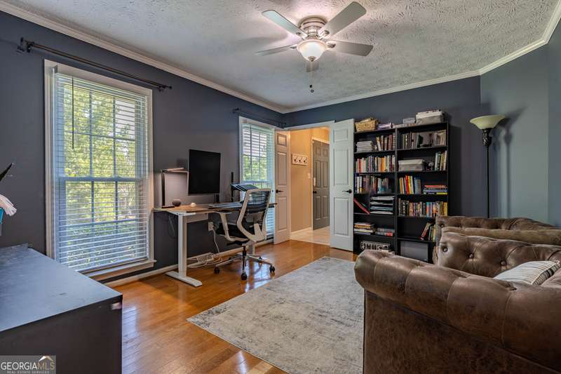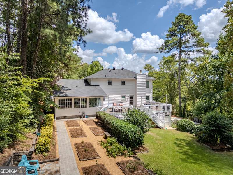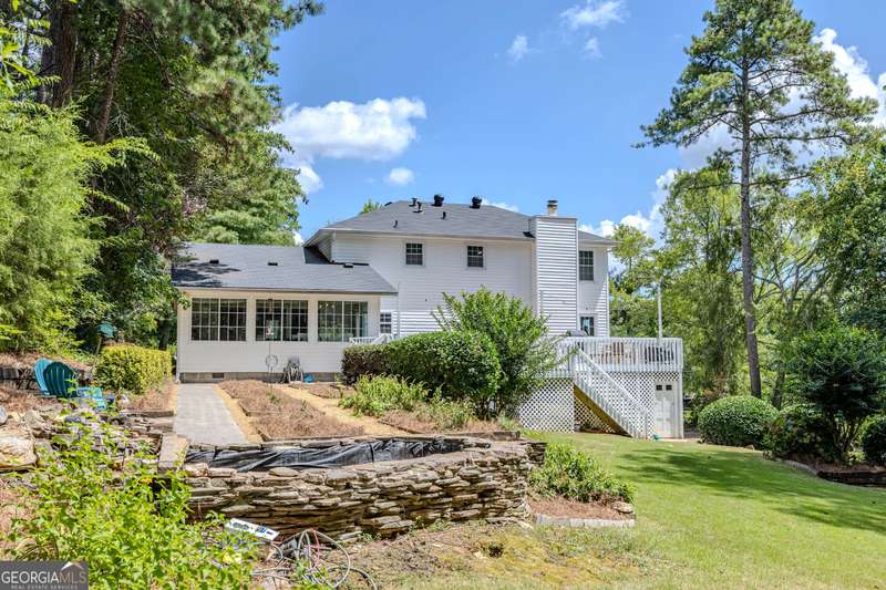 Wonderful large family home in Woodfin Estates! New roof, new tankless water heater, and an encapsulated crawlspace! On the main floor is a living room with floor to ceiling windows and a fireplace, office, kitchen and HUGE den with built-ins adjacent to a spacious sunroom. Upstairs are two bedrooms and a full bath in the hallway. The master has an en-suite bath and a large closet/office flex space. The basement is used as an additional guest bedroom with a closet and the laundry. The deck out back is the perfect place for entertaining. Raised beds and a small water feature (add your own fish!) make the backyard very inviting!