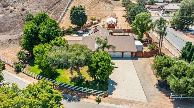 Equestrian Paradise in Norco, CA. Located on a Premium 2.03 Acre Corner Lot. The perfect blend of rural charm and modern convenience. This spacious equestrian estate is situated on a desirable corner lot with dual gated access, making it ideal for horse owners, animal lovers, or anyone looking for extra space and functionality. Zoned for 23 large animals, plenty of room for horses, livestock, or other animals. Two separate gates for easy vehicle entry. Second gated access on the First St side, ideal for back-of property entry access. Ample space to add a round pen, riding arena, stables or future expansion. Custom built chicken coop, 3 sheds for storage, or tack rooms. Professionally landscaped private backyard with a saltwater pool, spa, raised deck nestled under mature shady trees. Expansive covered patio running the full length of the back side of the home perfect for relaxing or entertaining. Interior Features: Upgraded kitchen granite countertops, center island, and stainless steel appliances. Dual-pane windows and sliding glass doors. Whole house fan, custom shutters, and water purification system. Energy-efficient solar panels (leased). Fifth bedroom with private entrance perfect for a mother in law suite, guests, or home office. Whether you're looking to embrace the Norco lifestyle with horses, or simply want room to spread out and enjoy the land, this home offers unmatched versatility and charm. Don't miss this rare opportunity! Schedule a private tour today!