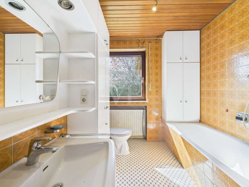 For sale is this wonderfully quietly situated detached house, which is also characterized by its generous living space of approx. 140 m², on a spacious plot of approx. 892 m² in the second row. The architect-designed house, built in 1972, offers six spacious rooms that can be optimally adapted to your needs. Centrally located and yet secluded from the outside, four bedrooms offer sufficient retreat space for family, guests, friends or professional matters. Two bathrooms guarantee additional comfort and contribute to the functionality of the house. As the last modernization was carried out in 1989, some renovation work is currently required, but the solid foundations of the house provide the best basis for this. The property is fired by a central oil heating system, which ensures a cozy living climate even on colder days. There is also an additional wood-burning stove. Are you interested in finding out more about this promising investment with lots of potential and charm? The von Poll Team Aschaffenburg looks forward to hearing from you!