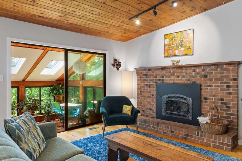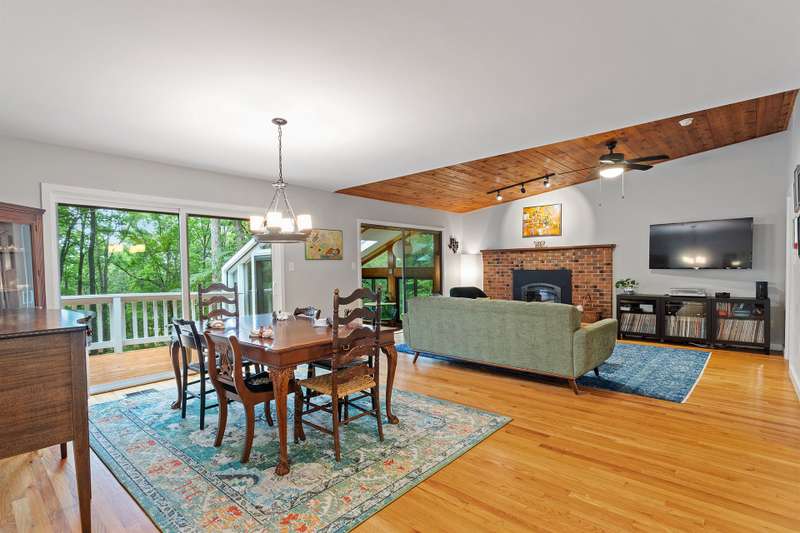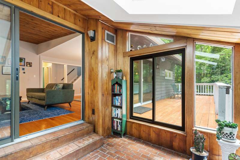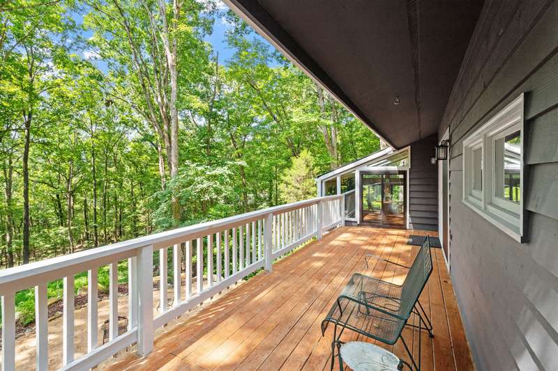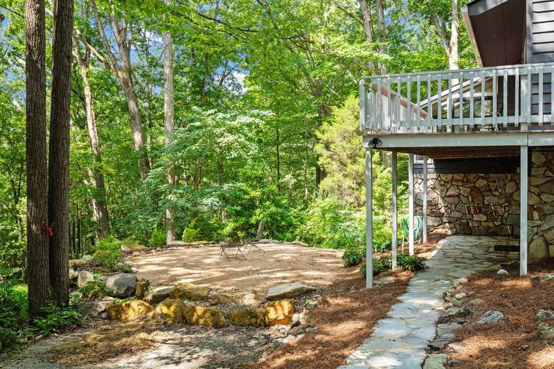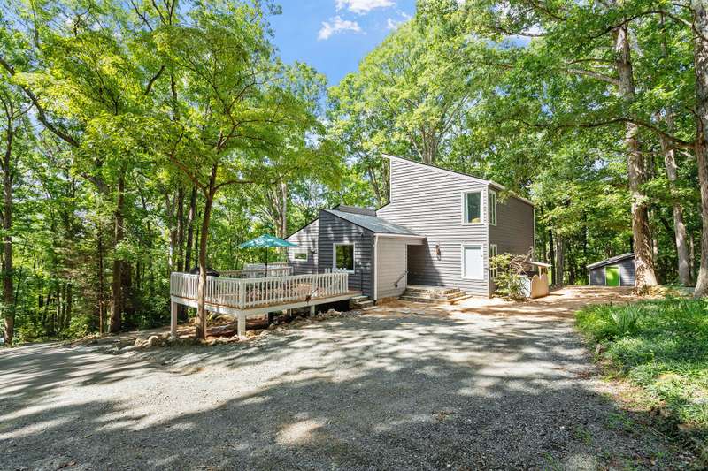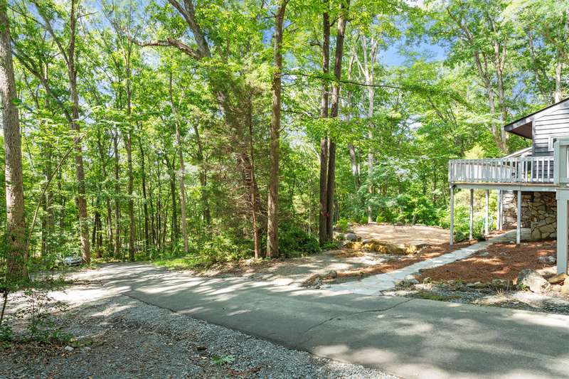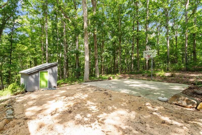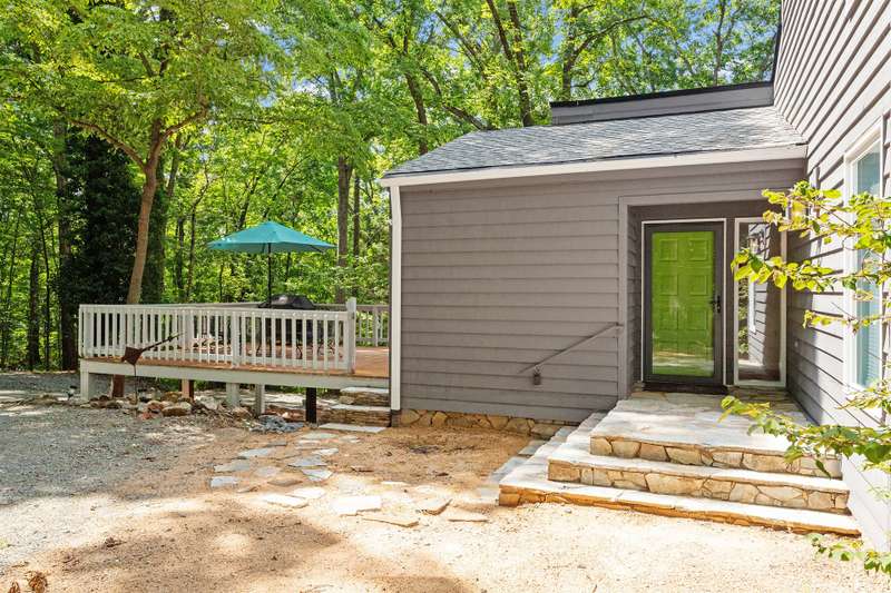 Modern vintage meets treehouse vibes in this one-of-a-kind Chapel Hill hideaway! Set on a serene 2.12-acre wooded lot, this 4-bedroom, 3-bathroom 70s contemporary is full of soul and surprises. The open-concept main level features rich hardwood floors, funky architectural lines, and a sunroom that begs for morning yoga, an art studio, or your plant collection. The custom pantry/bar area adds extra style and function, perfect for entertaining or quiet evenings in. The main bedroom has its own private balcony for enjoying your morning coffee or a private nightcap. The finished basement is ready for movie nights, jam sessions, arcade games, or whatever creative space you've been dreaming about. If working with your hands or outdoors is more your vibe, check out not one but two outdoor workshops perfect for your woodworking, metalworking, or gardening hobbies. There's even a concrete basketball court with Carolina blue lines so you can properly live out your Tar Heel basketball fantasy! Or maybe relaxing is more your speed, so you'll enjoy the patio off the basement or the deck off the main level. The current owners have taken great care of the property with notable updates like a new roof and new carpet in 2025, new HVAC, gutters, gas stove, and microwave in 2022, and updated windows in the sunroom and main floor bedrooms in 2021. It feels like you're living in a private forest, but you're just minutes from UNC, Carrboro, and all the local flavor that makes this area so beloved. If you're craving something cool, creative, and totally not cookie-cutter, this is the home for you.