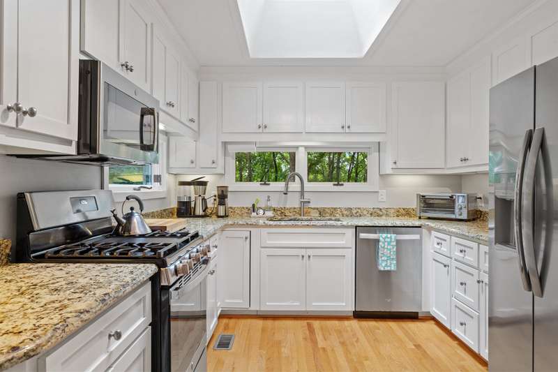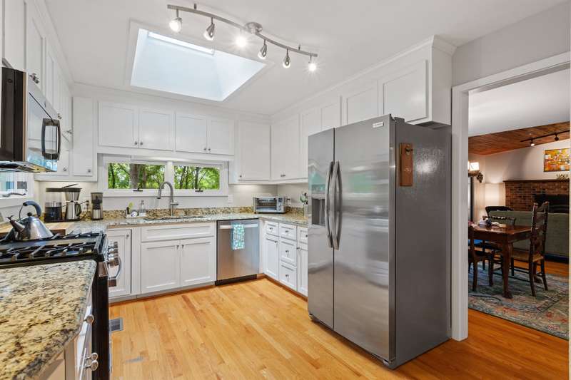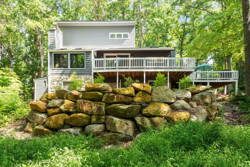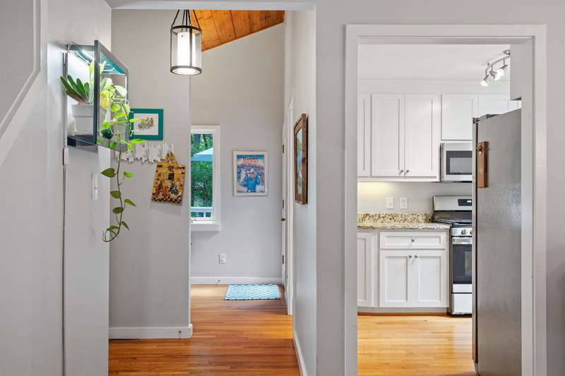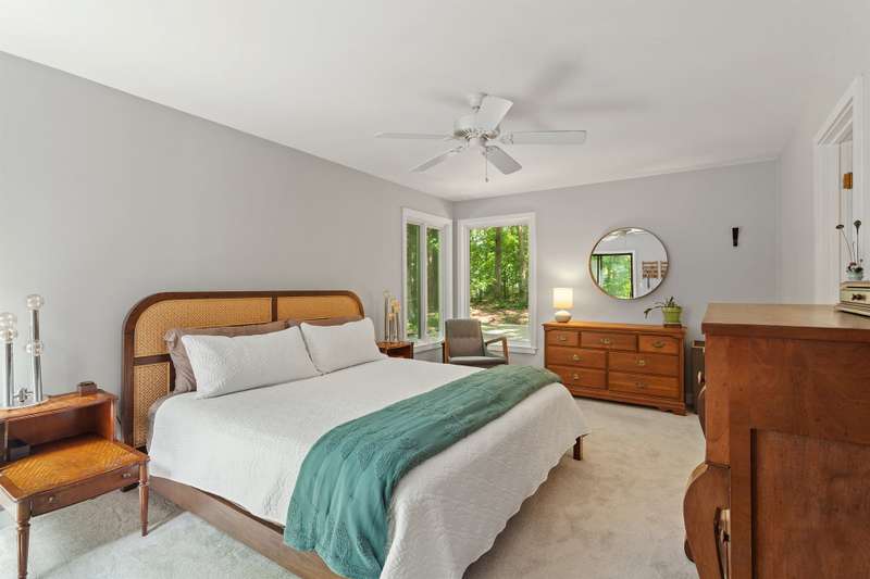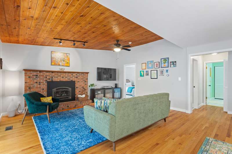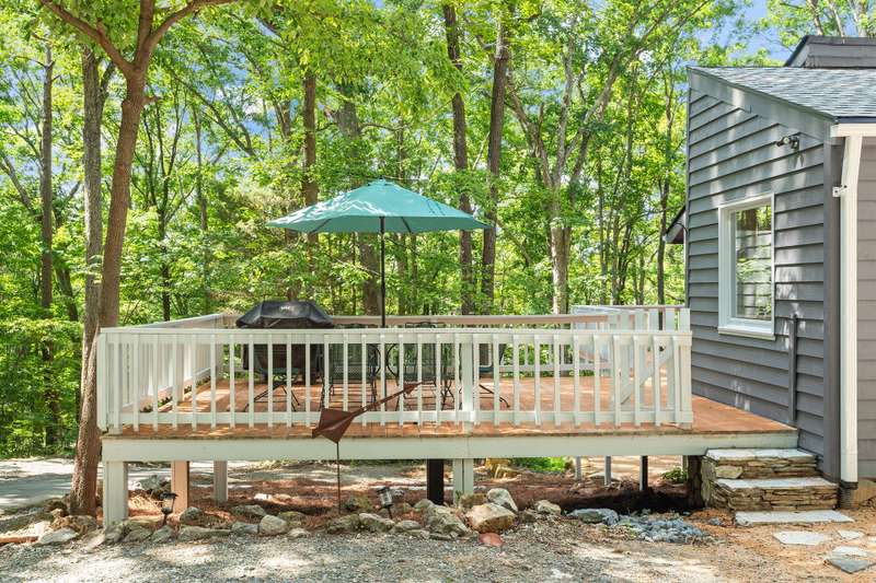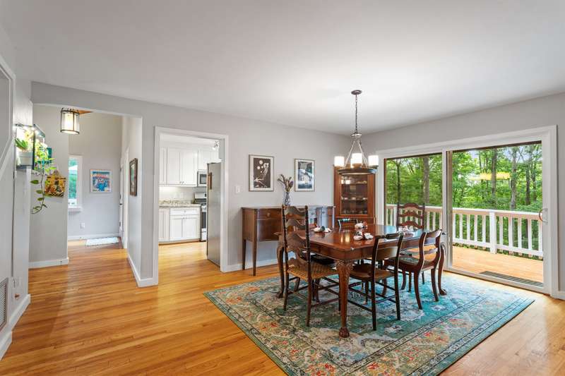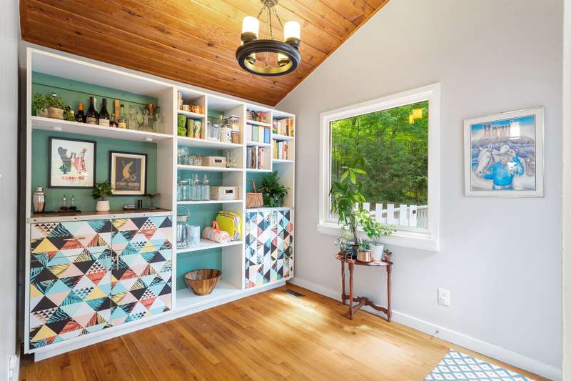 Modern vintage meets treehouse vibes in this one-of-a-kind Chapel Hill hideaway! Set on a serene 2.12-acre wooded lot, this 4-bedroom, 3-bathroom 70s contemporary is full of soul and surprises. The open-concept main level features rich hardwood floors, funky architectural lines, and a sunroom that begs for morning yoga, an art studio, or your plant collection. The custom pantry/bar area adds extra style and function, perfect for entertaining or quiet evenings in. The main bedroom has its own private balcony for enjoying your morning coffee or a private nightcap. The finished basement is ready for movie nights, jam sessions, arcade games, or whatever creative space you've been dreaming about. If working with your hands or outdoors is more your vibe, check out not one but two outdoor workshops perfect for your woodworking, metalworking, or gardening hobbies. There's even a concrete basketball court with Carolina blue lines so you can properly live out your Tar Heel basketball fantasy! Or maybe relaxing is more your speed, so you'll enjoy the patio off the basement or the deck off the main level. The current owners have taken great care of the property with notable updates like a new roof and new carpet in 2025, new HVAC, gutters, gas stove, and microwave in 2022, and updated windows in the sunroom and main floor bedrooms in 2021. It feels like you're living in a private forest, but you're just minutes from UNC, Carrboro, and all the local flavor that makes this area so beloved. If you're craving something cool, creative, and totally not cookie-cutter, this is the home for you.