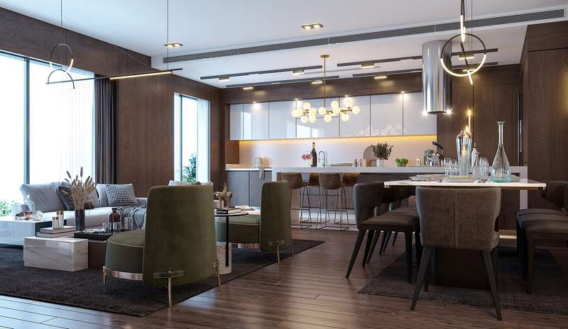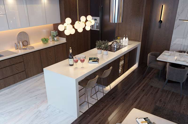 The apartments consist of bedrooms, living room, open kitchen, entrance hall, separate bathroom and dressing room in the bedrooms, laundry room and common bathroom areas. The apartments are equipped with quality kitchen cabinets, garderobe, quality bathroom and kitchen fixtures, laminate and ceramic floor coverings, steel door, aluminum heat glazed window systems, shower cabin.