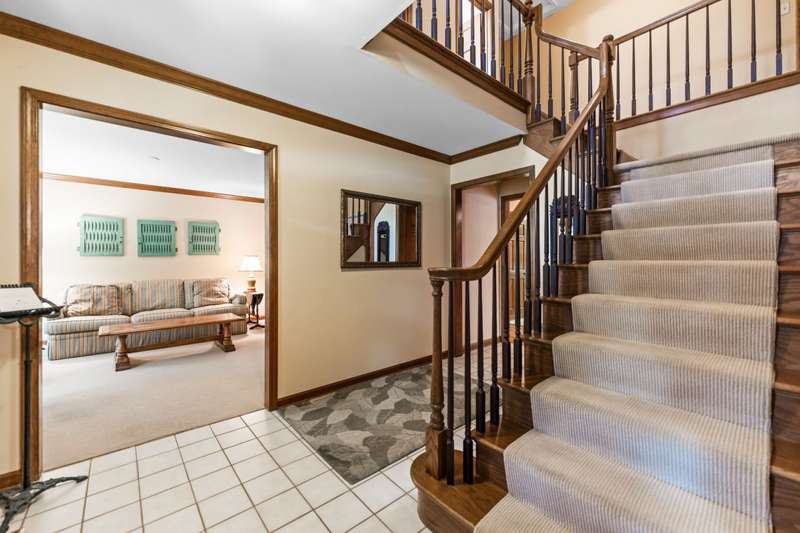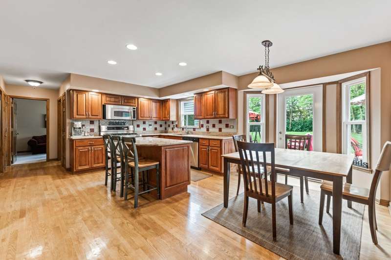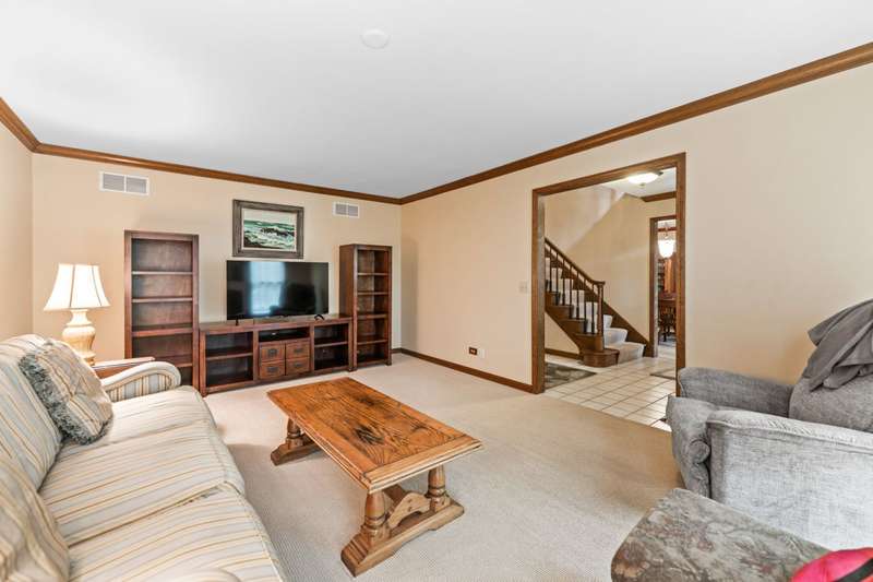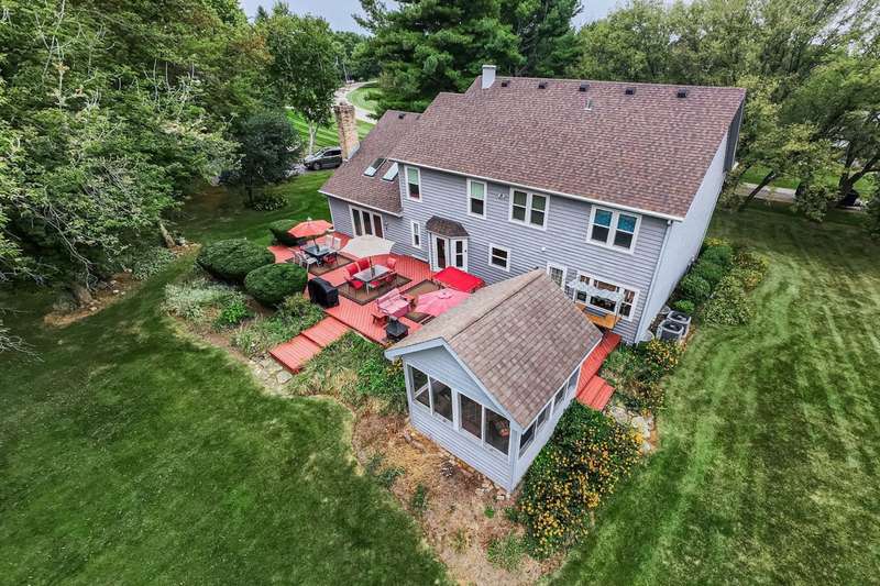 Welcome to this spacious 5-bedroom, 2 full/2 half bath home located in the highly sought-after Deer Run Creek neighborhood of St. Charles. Set on 1.29 acres with mature trees and a serene natural backdrop, this property offers privacy, comfort, and exceptional curb appeal. The main level features hardwood floors, an open-concept kitchen with cherry cabinetry, granite countertops, and stainless-steel appliances that flows into the eating area and family room-ideal for everyday living and entertaining. A main-floor laundry room with utility sink and exterior service door adds convenience. Formal living room, dining room and optional 5th bedroom/den complete the first floor. Upstairs, the expansive primary suite includes a sitting area, two walk-in closets, and a spa-like ensuite bath. 3 generously sixed bedrooms and a second full bath complete the upstairs. The partially finished basement includes a bathroom, LVP, second kitchen option and provides flexible space for a rec room, gym, or office and plenty of room for storage. Enjoy outdoor living with an expansive deck and screened-in patio-perfect for relaxing or hosting guests. Recent upgrades include newer windows, two new furnaces, and zoned heating and cooling for year-round efficiency. A 2-car garage completes this well-maintained home in a prime location!