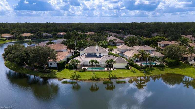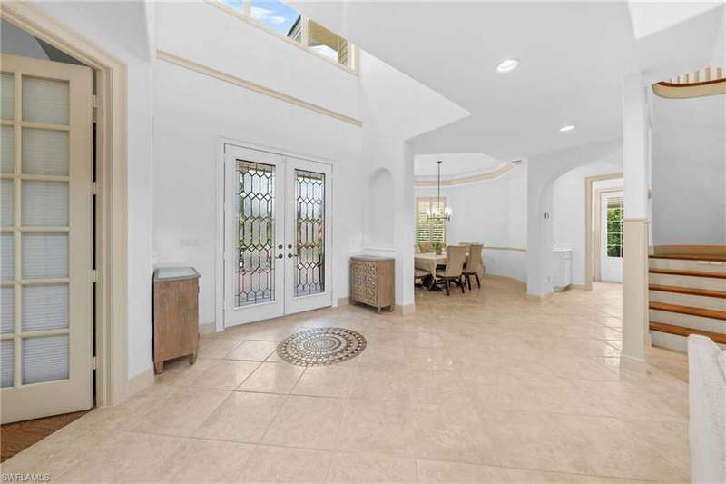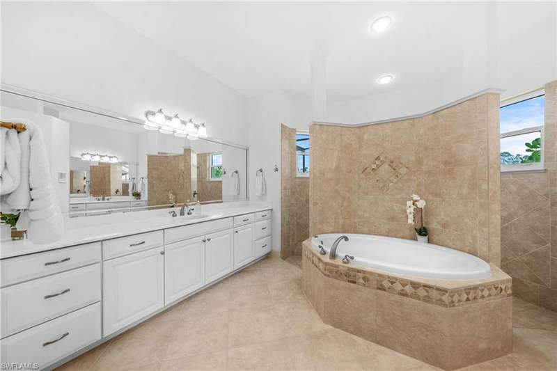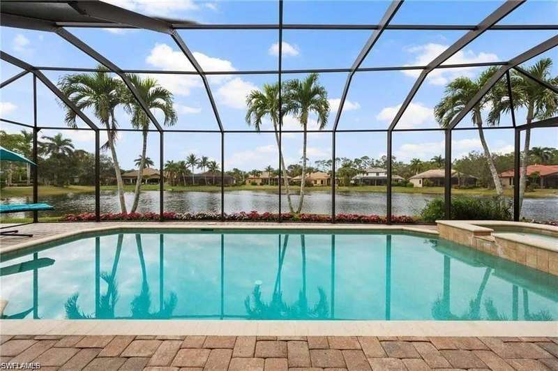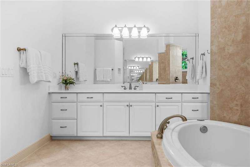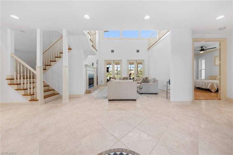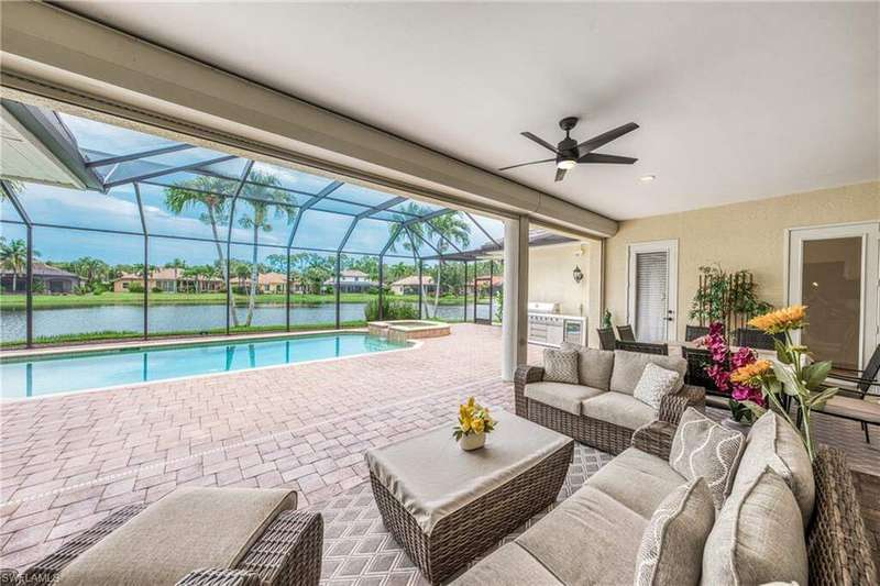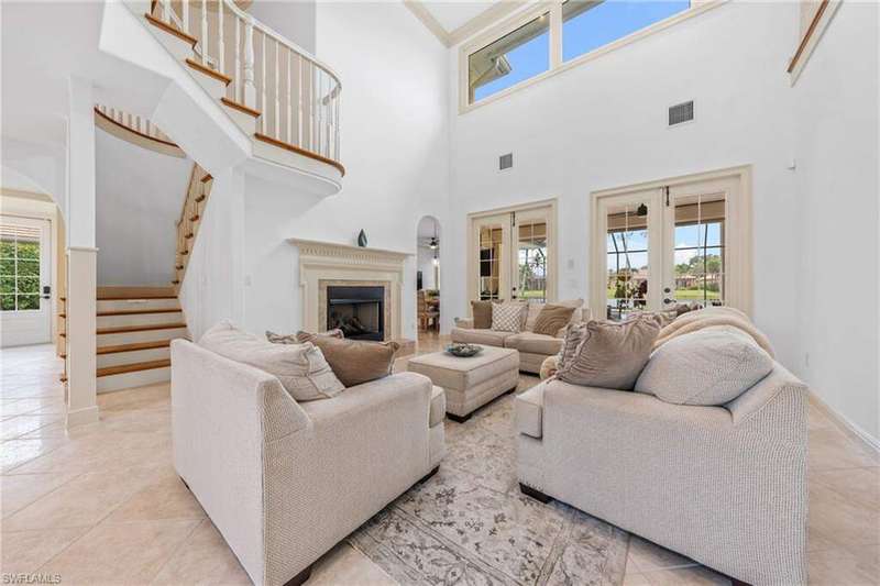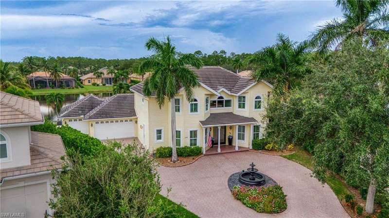 The ultimate in Naples and Florida living is ready for you. Boasting nearly 3,600 sq. ft. of living space, this rarely available 2-story concrete block residence with plenty of natural light, offers 4 bedrooms + den, 4 full bathrooms, and a pool bath. This home represents an exceptional market value, priced below recent appraisals and comparable sales, offering buyers a rare opportunity to own a property enhanced by hundreds of thousands of dollars in thoughtful upgrades. The heated saltwater system pool, jacuzzi, 3-car garage, and cul-de-sac location provide both luxury and privacy, while direct access to North Collier Park and top-rated schools make this ideal for families. No detail was overlooked: new light fixtures, fresh paint, and modern upgrades enhance every corner of this stunning property from top to bottom. The grand foyer with soaring ceilings leads to the formal living area, while all new impact-resistant doors and windows ensure peace of mind. A newer 24kW Generac whole-house generator with a 500-gallon underground LP tank offers up to 5 days of backup power. The chef's kitchen features newer LG stainless steel appliances (under extended warranty), granite/epoxied counters, a large walk-in pantry, and chic functional style. In the North wing, the first-floor primary suite is a true retreat, with a double vanity, double walk-in closets, separate tub and walk-in shower with double shower heads, and private access to the enclosed lanai, also, the den/office, large formal dining room, formal living room and a family room. Upstairs, two guest bedrooms share a Jack-and-Jill bath, and an ensuite offers abundant natural light and privacy, along with a custom built-in bookshelf for the avid reader. Resort-style living continues outdoors with 145 feet of west-facing water views, a saltwater pool and spa, built-in outdoor kitchen with 8-burner gas/charcoal grill and refrigerator, powder room, and covered lanai perfect for entertaining. The 3-car garage includes epoxy flooring, AC, and extra storage. Additional upgrades include brand new LG washer/dryer, whole-house spring water reverse osmosis filtration and UV system, 2023 HVAC system, and a 2019 Tile Roof, fountain, paved circular driveway, automatic irrigation system, automatic front door, and lanai patio hurricane roll down shutters. Wilshire Lakes offers the ultimate in luxury, man-guarded 24 hours security gate, located less than 6 miles from the pristine white-sand Naples beaches, nearby shopping, fine dining, entertainment, west of I-75, rate A school zone and much more... -this home is truly a gem!