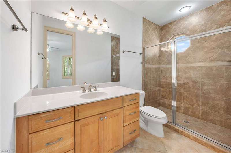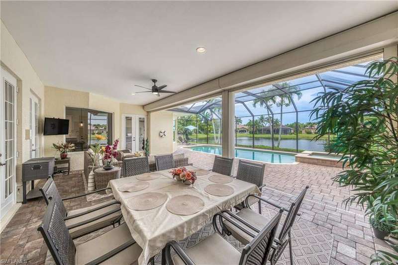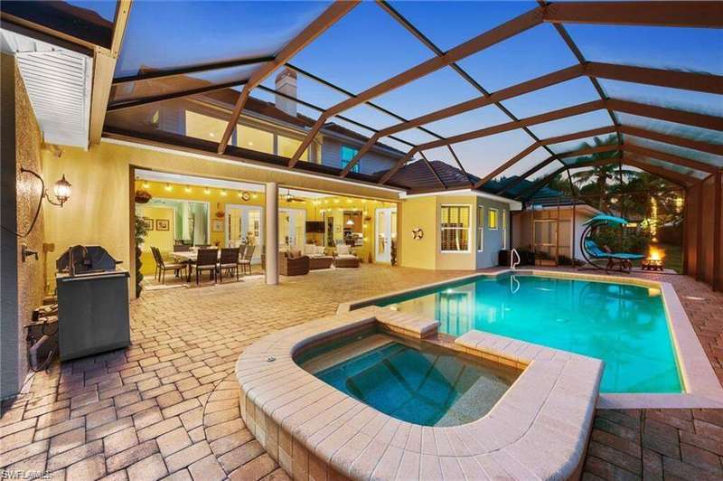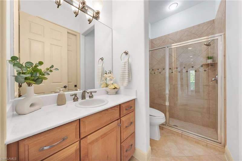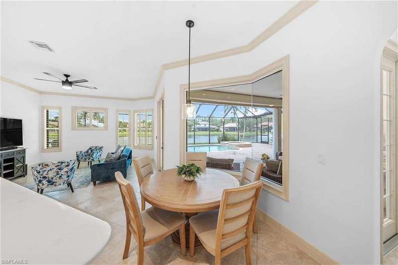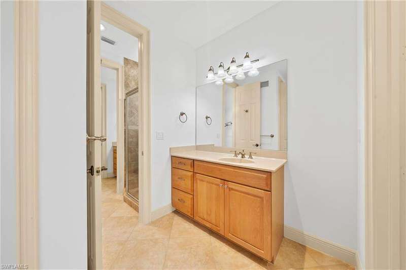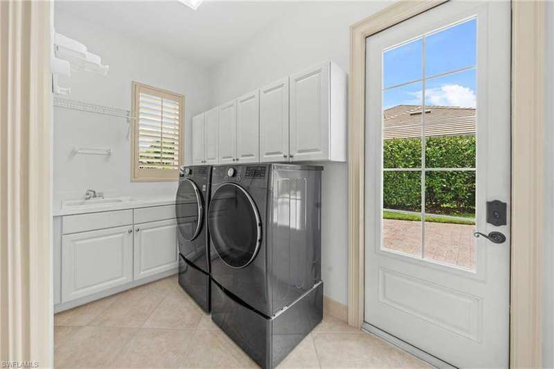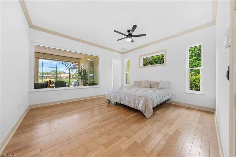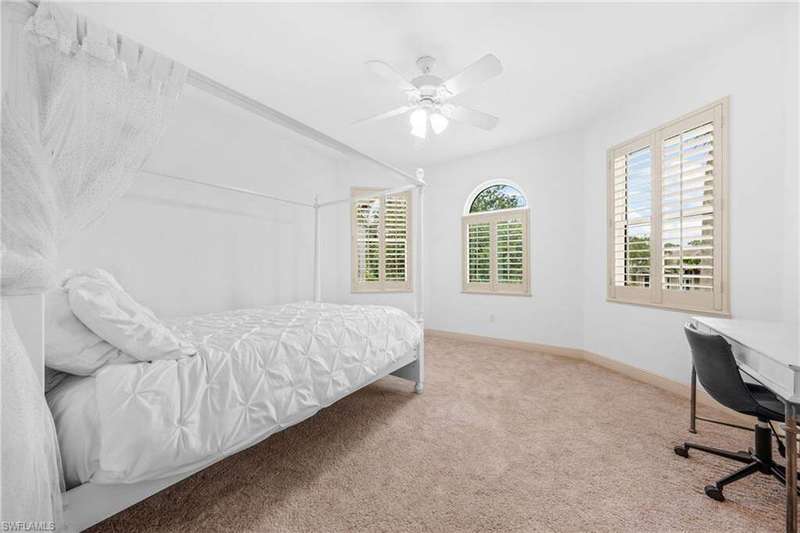 The ultimate in Naples and Florida living is ready for you. Boasting nearly 3,600 sq. ft. of living space, this rarely available 2-story concrete block residence with plenty of natural light, offers 4 bedrooms + den, 4 full bathrooms, and a pool bath. This home represents an exceptional market value, priced below recent appraisals and comparable sales, offering buyers a rare opportunity to own a property enhanced by hundreds of thousands of dollars in thoughtful upgrades. The heated saltwater system pool, jacuzzi, 3-car garage, and cul-de-sac location provide both luxury and privacy, while direct access to North Collier Park and top-rated schools make this ideal for families. No detail was overlooked: new light fixtures, fresh paint, and modern upgrades enhance every corner of this stunning property from top to bottom. The grand foyer with soaring ceilings leads to the formal living area, while all new impact-resistant doors and windows ensure peace of mind. A newer 24kW Generac whole-house generator with a 500-gallon underground LP tank offers up to 5 days of backup power. The chef's kitchen features newer LG stainless steel appliances (under extended warranty), granite/epoxied counters, a large walk-in pantry, and chic functional style. In the North wing, the first-floor primary suite is a true retreat, with a double vanity, double walk-in closets, separate tub and walk-in shower with double shower heads, and private access to the enclosed lanai, also, the den/office, large formal dining room, formal living room and a family room. Upstairs, two guest bedrooms share a Jack-and-Jill bath, and an ensuite offers abundant natural light and privacy, along with a custom built-in bookshelf for the avid reader. Resort-style living continues outdoors with 145 feet of west-facing water views, a saltwater pool and spa, built-in outdoor kitchen with 8-burner gas/charcoal grill and refrigerator, powder room, and covered lanai perfect for entertaining. The 3-car garage includes epoxy flooring, AC, and extra storage. Additional upgrades include brand new LG washer/dryer, whole-house spring water reverse osmosis filtration and UV system, 2023 HVAC system, and a 2019 Tile Roof, fountain, paved circular driveway, automatic irrigation system, automatic front door, and lanai patio hurricane roll down shutters. Wilshire Lakes offers the ultimate in luxury, man-guarded 24 hours security gate, located less than 6 miles from the pristine white-sand Naples beaches, nearby shopping, fine dining, entertainment, west of I-75, rate A school zone and much more... -this home is truly a gem!