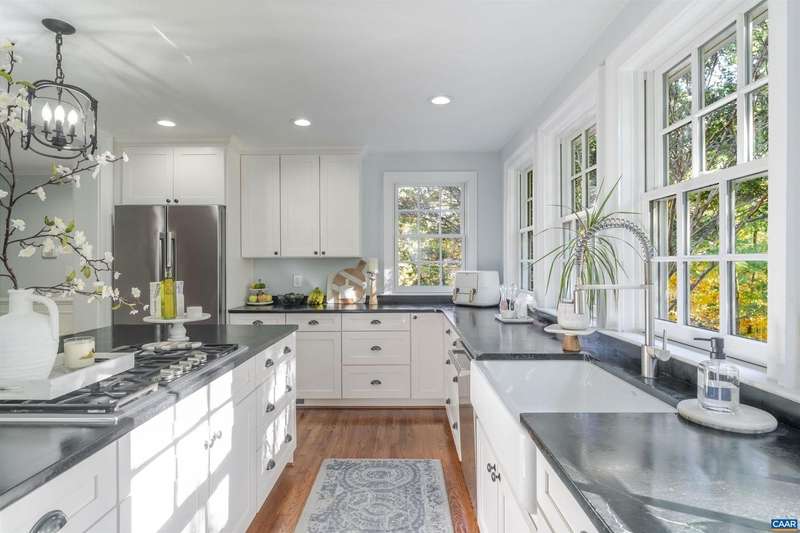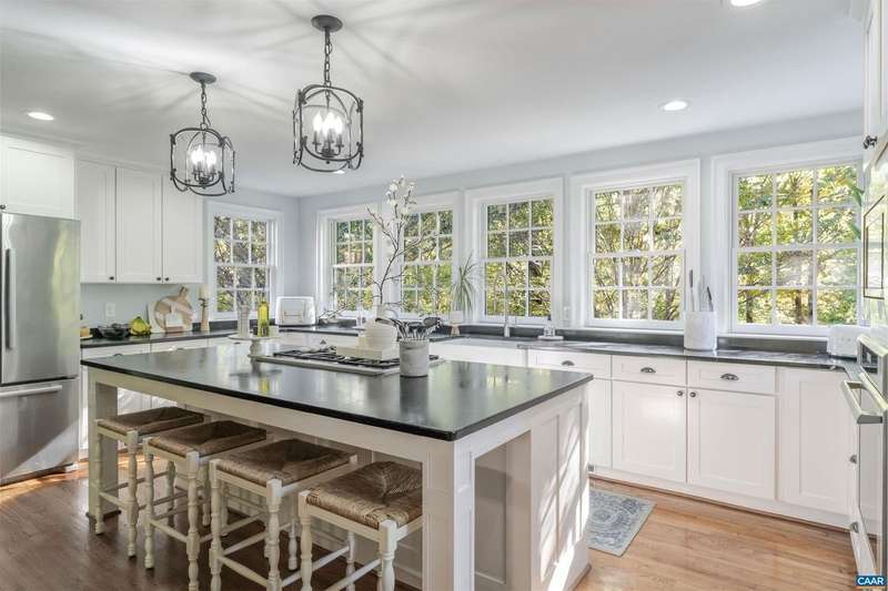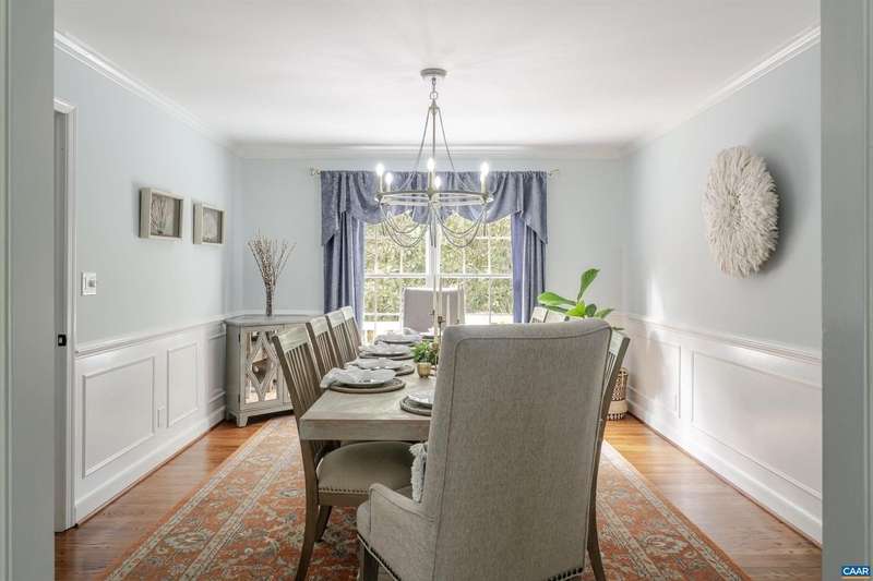 Stately Brick Home nestled on half an acre bordering acres of wooded common space. Seller offering a $20,000 Buyer Credit toward updates or closing costs with an acceptable offer-an Excellent Opportunity to personalize this beautiful home. The fenced backyard is a peaceful retreat for relaxing or get togethers. Beautiful 5BR/3.5BA traditional brick home with 3,597 finished sq ft, located on a lovely tree-lined street in the gated Glenmore Community. Interior features include traditional hardwood floors throughout, a spacious family room and formal dining room. The living room/library offers built-in bookshelves, and the kitchen showcases soapstone counters with windows on 3 sides, offering an abundance of natural light. Large kitchen island perfect for entertaining. The breakfast nook with built-ins is ideal for coffee or casual meals. Upstairs, the renovated primary suite offers a spa-like bath and walk-in closet, plus 4 additional bedrooms and 2 full baths. Enjoy outdoor living on the large deck and beautifully hardscaped patio. Additional features include 2-car garage, new HVAC, and ample storage. Community Amenities: Golf, Pool, Tennis, Walking Trails, Fitness Center and Clubhouse with Dining.
