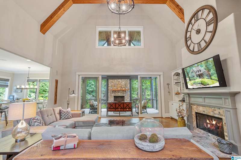 LUXURIOUS and PRIVATE custom built home w/ 6+ acres nestled in the stunning Stonegate Farms. From the gated entry to the mountain and lake views, to the 5 Bdr/4Bath home w/ stonework, cedar beams, and lavish landscaping, the scenes are post-card worthy. Upon entry, there is 4,500+ s/f of elegant/rustic charm: 23'+ vaulted ceilings w/ cedar beams, hardwood floors, gas FP, open Kitchen w/ leathered stone island, custom cabinetry and butler pantry. Sliding glass doors and transom windows offer a view of a towering stone wood-burning FP on screened-in porch w/ vaulted ceilings & gorgeous Ipe flooring combining the interior design and outdoor living space. Master Ensuite has sitting area, custom window seats, free standing tub, large walk-in shower and is adjacent to an oversized laundry rm. Daylight basement has Craft rm, Family rm, Bedrm, Full Bath -all w/ high-end finishes as upper level. Main & lower garages; New roof 2024; Built 2015; Property is PRISTINE inside/out. Fall pics included