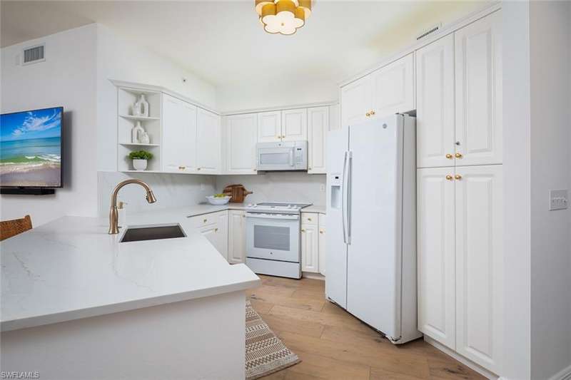 Rarely available annual rental at Regatta. WHERE LUXURY MEETS SIMPLICITY. Discover a stunning residence with approximately 1,700 square feet of open living space, featuring a thoughtfully designed 3-bedroom, 2-bath layout. The kitchen has been remodeled to eliminate soffits, creating a spacious, open area perfect for hosting and entertaining. Natural light pours into the interior, enhancing the coastal ambiance ideal for bayfront living. Every detail has been carefully considered, with wood flooring, new baseboards and casing, upgraded appliances, new lanai screens and shutters, stylish light fixtures, and coastal-inspired furnishings throughout. Enjoy access to a variety of amenities, including a tropical waterfall pool, relaxation pool, boat docks, fitness rooms, grilling areas, and more. Just 500 yards from Vanderbilt Beach and steps away from the renowned Ritz Carlton, this residence is ideally located near upscale attractions like Mercato, Pavilion, and Waterside Shops. Explore de