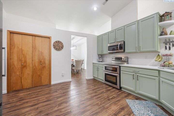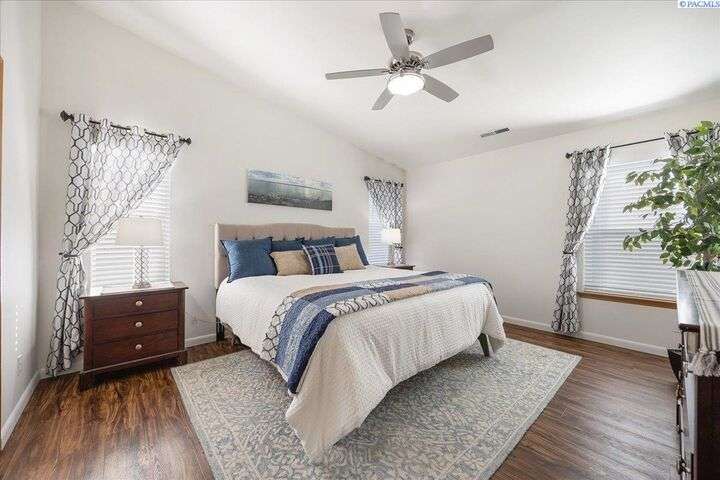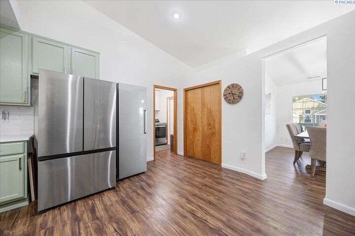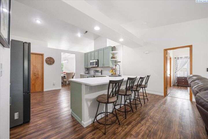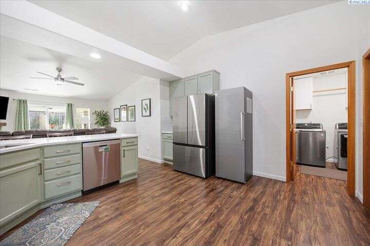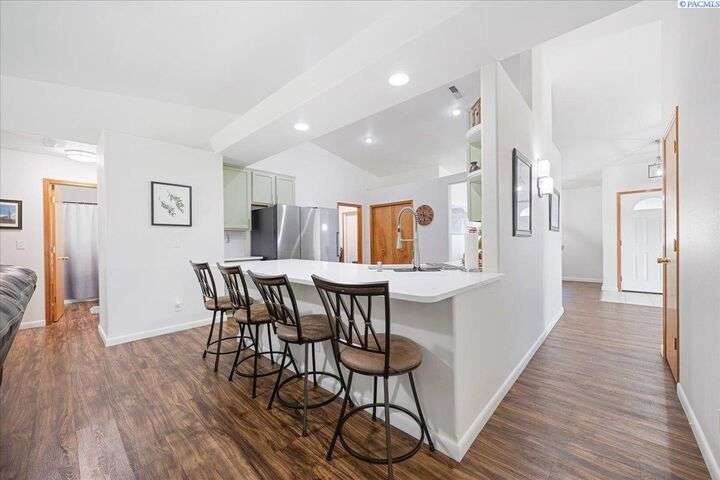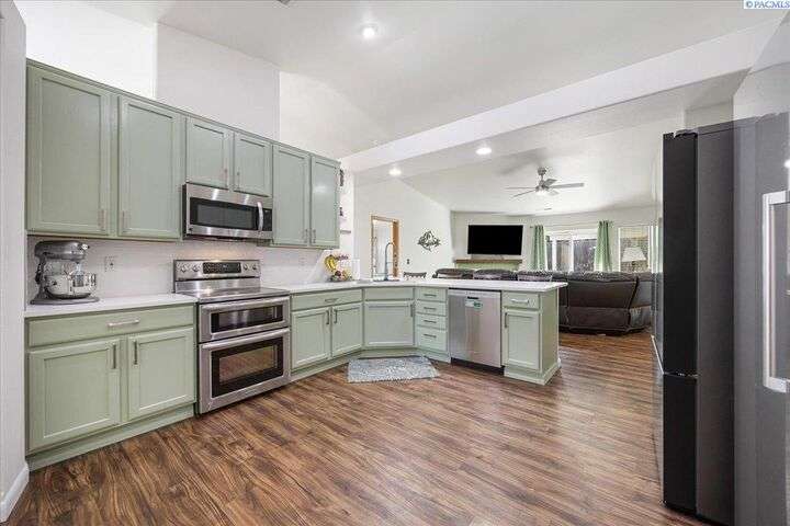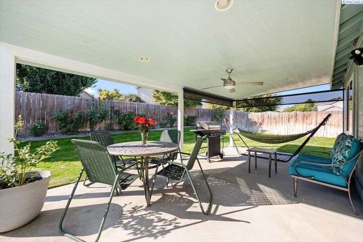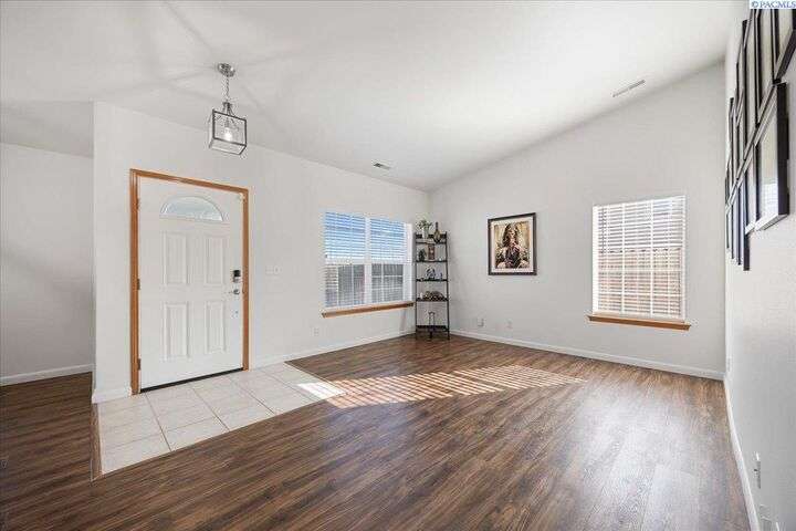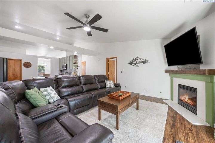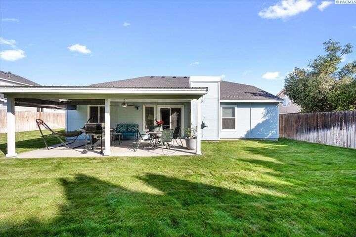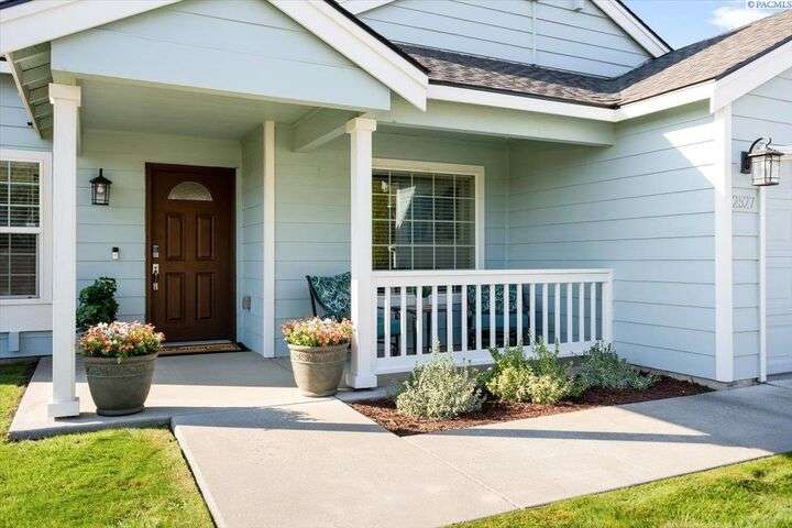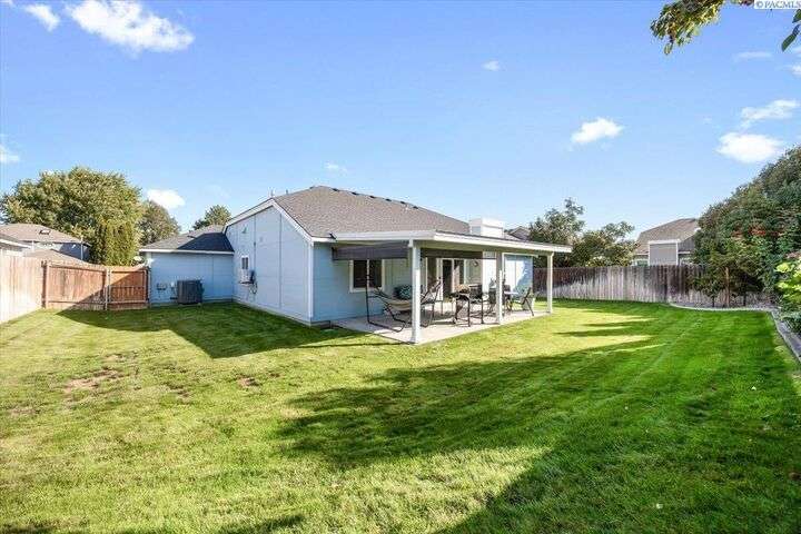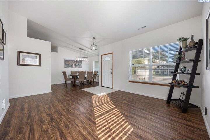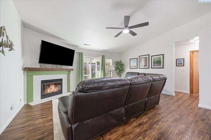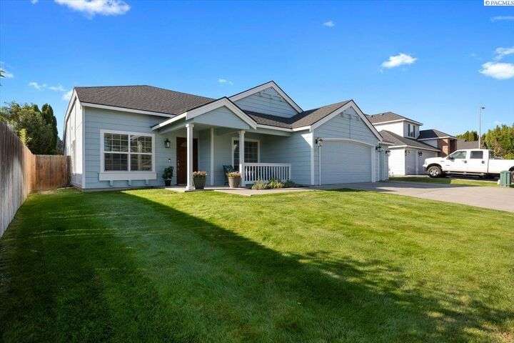MLS# 287794 Welcome to this beautifully maintained rambler offering 3 bedrooms, 2 baths, and a spacious 3-car garage. Pride of ownership shines with thoughtful updates throughout. The professionally landscaped yard sets the stage, while vaulted ceilings and abundant natural light create an open and inviting feel. The updated kitchen is a showstopper—featuring quartz countertops, all appliances included, and plenty of room for gathering. Modern upgrades include new paint, new lighting, a new roof, quartz surfaces throughout, and a stylish backlit mirror in the primary bath. Cozy up by the gas fireplace with custom mantle, and enjoy peace of mind with a newer water heater (2022). Step outside to your large, private covered patio and backyard oasis with mature peach and plum trees. With plenty of storage and countless updates, this home truly has it all. Ask your agent for the complete upgrade list and schedule your showing today!