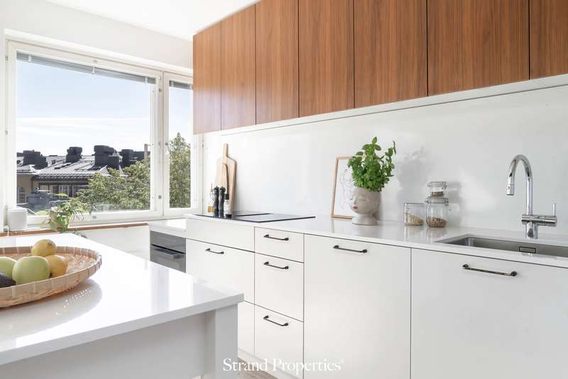 Valoisa läpitalon koti avarin näkymin Tehtaanpuistoon Laivurinkadun arvostetussa osoitteessa, viidennessä kerroksessa, avautuu 87 m²:n läpitalon huoneisto, jonka ikkunoista ja parvekkeelta aukeavat vehreät, avarat näkymät Tehtaanpuistoon ja ympäröivään kaupunkimaisemaan. Tilava ja valoisa olohuone yhdistyy luontevasti parvekkeeseen, täydellinen paikka nauttia iltapäivän auringosta ja vuodenaikojen vaihtelusta puiston latvusten yllä. Asunnossa on kaksi erillistä makuuhuonetta, hyvin suunniteltu keittiö sekä runsaasti säilytystilaa. Keittiö ja kylpyhuone on remontoitu muutama vuosi sitten tyylillä ja laadukkailla materiaaleilla. Läpitalon pohjaratkaisu takaa valon kulun ja miellyttävän ilmavuuden koko päivän. Sijainti Ullanlinnassa on vertaansa vailla. Kivenheiton päässä ovat niin Kaivopuiston rantakävelyt, Korkeavuorenkadun ja Kapteeninkadun putiikit kuin huippuluokan ravintolat ja kahvilat.