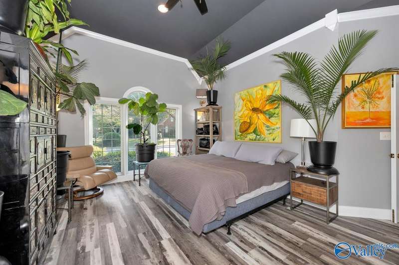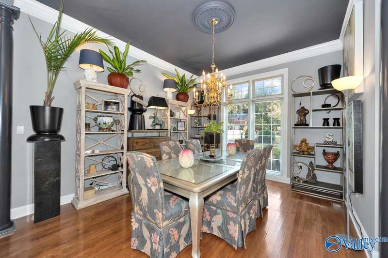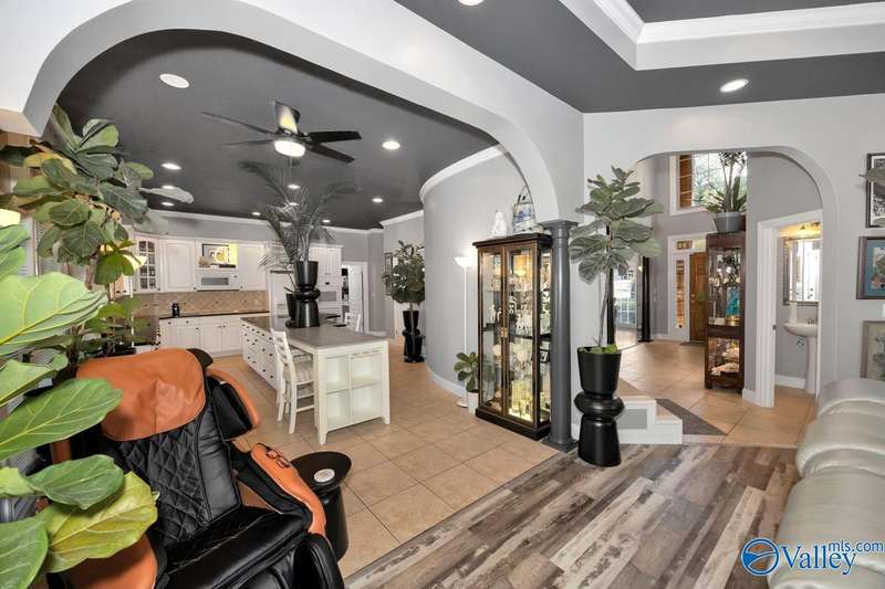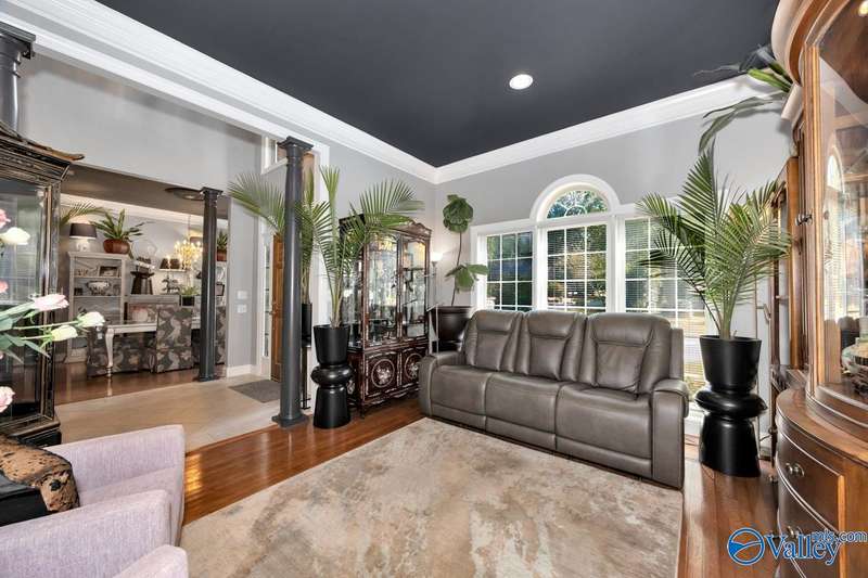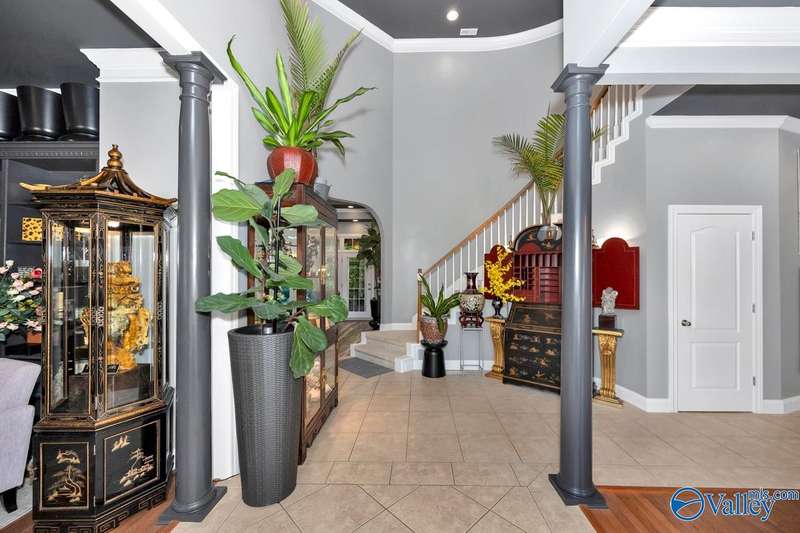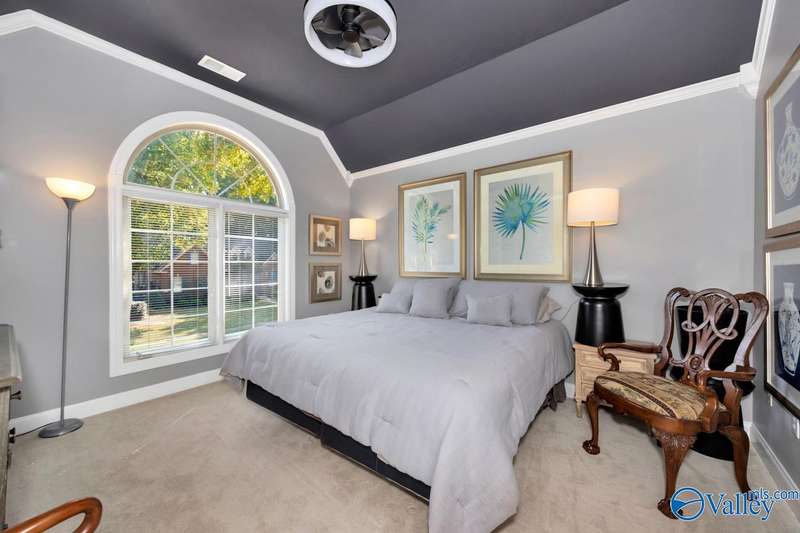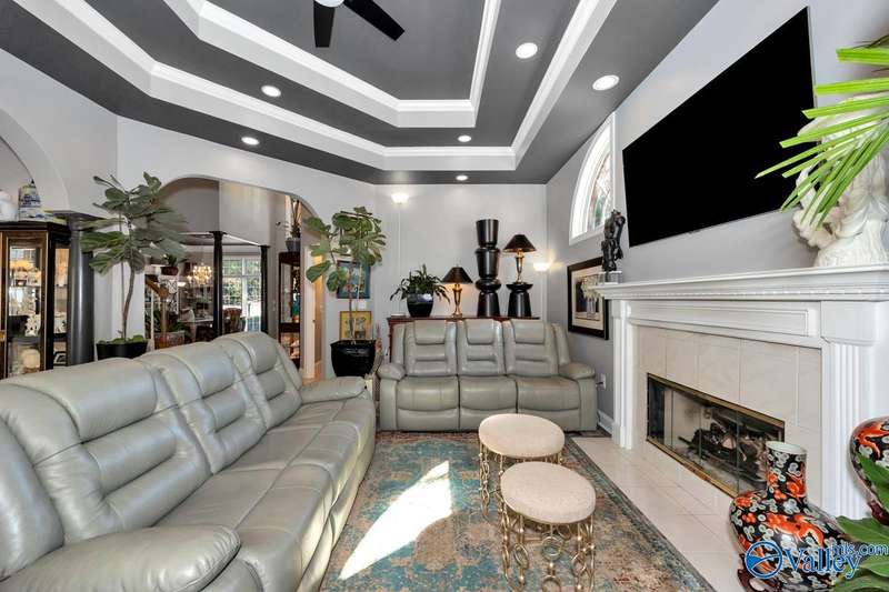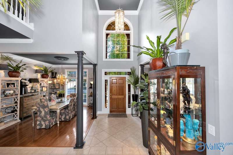 Elegant home in the tucked-away community of Stratford Square Estates, located in the heart of Madison City. Grand entrances include circle driveway and two-story foyer with curved staircase. Formal Dining and Living Rooms located off the Foyer. Living Room features double trey ceiling and fireplace. Spacious Kitchen with curved island and lots of storage. Main level Primary Suite features vaulted ceiling and private bath with double vanity, jacuzzi tub and separate shower. Incredible outdoor spaces including screened porch and patio with scenic backyard. Side entry driveway and 3 car garage with lots of parking availability.