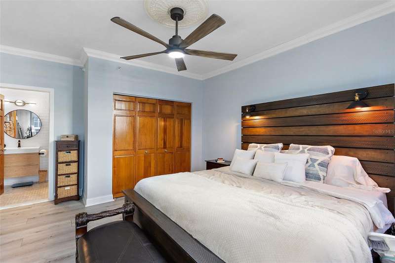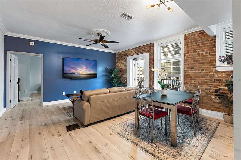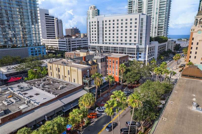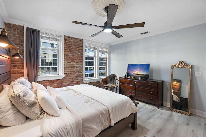 Own a piece of history in the heart of downtown St. Petersburg with this fully furnished 2-bedroom, 2-bath condo at the iconic Detroit Hotel, offering 1,065 square feet of stylish living space. This is your chance to live downtown, just two blocks from the water, without paying a million dollars or dealing with high HOA fees! Walk to your favorite café in the morning and your favorite restaurant at night—everything you need is right at your doorstep. The Hotel Detroit, built in 1888 and developed into condos in 2001, is the oldest building in St. Petersburg and a true historic gem. This beautiful, iconic condo tells a story of the city’s rich past while offering all the conveniences of modern living. With exposed brick walls, soaring ceilings, and oversized windows that fill the space with natural light, the charm of the original structure shines through. The condo has been thoughtfully updated with modern features, including renovated bathrooms, a sleek kitchen, and new flooring throughout, creating the perfect blend of historic character and contemporary design. The split floor plan offers privacy and spaciousness, making it ideal for both relaxing and entertaining. Two private balconies provide stunning views of downtown, offering the perfect spot to unwind while enjoying the energy of the city. You’ll also enjoy the rare benefit of a common easement with Jannus Live, placing you at the center of the most vibrant block in St. Pete, just steps from the nightlife scene and the city’s most popular attractions. This unit is one of the quietest in the building, so you can enjoy the tranquility of your own home while being steps away from the sights and sounds of surrounding venues. Whether you choose to relax in peace inside or explore the exciting offerings just outside your door, you’ll have the best of both worlds. Inside, you’ll appreciate the modern amenities, including an in-unit washer and dryer, a large kitchen that’s perfect for cooking and hosting guests, and a master suite with ample closet space. Parking is conveniently available in the garage just across the street for approximately $80/month, ensuring easy access to your home. This condo is a truly unique opportunity to live in a historic building while enjoying all the conveniences of modern life. Come experience the best of downtown St. Petersburg—where history meets vibrant city living.