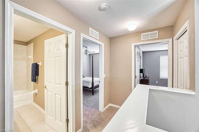 Welcome to Your New Home in Reflection Lakes! This super clean and well-maintained 3 bedroom, 2.5 bath home is move-in ready and full of charm. With a one-car attached garage, it's got everything you need in a perfect location. Step inside to a bright white kitchen with an eat-in dining area and a convenient bar window that opens to the spacious great room - perfect for entertaining or just relaxing at home. Tile flooring runs throughout the entire downstairs, and there's a screened lanai porch that lets in tons of natural light. The primary suite is conveniently located on the first floor and features a walk-in closet, while the two additional bedrooms and full bath are tucked away upstairs. Walk right out your lanai and you're just steps from the pickleball courts! Reflection Lakes is packed with amenities - think basketball, bocce, tennis, volleyball, a resort-style pool and spa, a fitness center, and more. You're also super close to shopping, hospitals, Sanibel, and Fort Myers Beach - talk about the perfect spot! Don't miss out on this awesome home - call today to schedule your private showing!