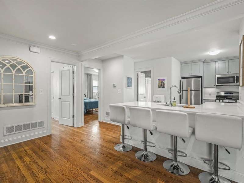 Wow! Prepare to be impressed. This move-in ready home blends timeless charm with modern comfort. Enter into a bright, open space filled with thoughtful updates. The stunning kitchen features custom gray shaker style, soft close cabinets that extend to the ceiling, pullout drawers, a pullout garbage and recycling bin, under cabinet lighting, and elegant white quartz countertops with a breakfast bar for seating. Enjoy the GE stainless steel appliances and a lighted pantry for added convenience. The main level highlights gorgeous original hardwood floors, crisp white trim and paneled doors, crown molding, and a spacious semi–open concept living area. Newer first floor windows and storm door. Two updated full baths feature modern finishes and fixtures. The hall bath includes a shower/tub combo, while the new ensuite bath features a marble walk-in shower and vanity top. The fully finished lower level is a showstopper, offering an expansive additional living space with newer LVP flooring, a dry bar with cabinetry, and a large laundry room complete with built-in cabinets and shelving. The basement has also been professionally waterproofed for additional peace of mind. New stainless steel refrigerator (2025), dishwasher (2024), Hot water tank (2022), furnace (2018), electrical upgrades, and roof (2020). Property being sold As-Is.