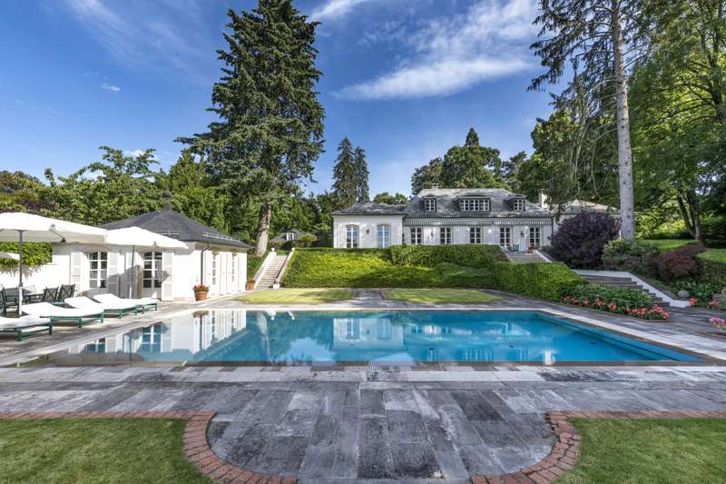 In one of Geneva's most sought-after neighborhoods, this majestic maison de maître in Vandoeuvres overlooks Lake Geneva and enjoys a peaceful, private setting. The charm begins as soon as you enter: an interior patio bathed in natural light harmoniously organizes the living spaces. The first floor, with its generous 653 m² of living space, includes an elegant kitchen, a vast living room, a refined dining room, a library, 2 guest bedrooms and a master suite with dressing room and bathroom. All rooms have direct access to the terraces. The 340 sqm converted attic offers space for 6 bedrooms and 4 bathrooms. A further 313 sqm is available for conversion to suit your needs (games room, offices, etc.). The 370 sqm basement is dedicated to well-being and comfort: wine cellar, fully-equipped gym with sauna, jacuzzi, massage room, children's playroom, laundry room, machine room, storage and more. Outside, a lush garden extends over a plot of almost 7,400 sqm. A superb 6x12-meter infinity pool, two heated pavilions, one with summer kitchen and changing rooms, and a six-car garage complete the ensemble. The garage is topped by an independent 1-bedroom apartment and a studio apartment, ideal for staff or guests. This unique property combines elegant architecture, top-of-the-range amenities and an exceptional location, just a few minutes from the center of Geneva. A rare property, designed for a discerning clientele seeking comfort, discretion and prestige.