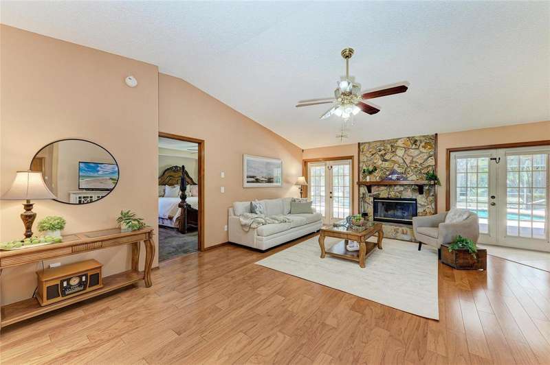 Back on the Market — A rare chance you don’t want to miss - a home in the highly sought-after Mill Creek community that truly has it all. Proudly maintained by its original owners and hitting the market for the very first time, this solidly built home sits on a premium homesite on over 1-acre lot with peaceful lake views and plenty of space to stretch out and enjoy the outdoors. From the moment you enter through the double doors, you’re greeted with a spacious living area featuring a vaulted ceiling, a dramatic fireplace, and two sets of French doors that flood the space with light and offer stunning views of the screened-in pool, lush backyard, and lake beyond. The formal dining room, complete with IMPACT windows, is perfect for hosting family dinners or holiday get-togethers. The home has great bones, and a layout designed for everyday comfort, offering the perfect canvas to personalize or update to suit your style. The kitchen is full of potential with ample cabinet space and a sunny breakfast nook for casual meals. The split floor plan gives the primary suite extra privacy, with its own dual closets, en-suite bathroom, and direct access to the southeast-facing patio—ideal for morning coffee or quiet evenings outside. Two additional guest bedrooms and a full bath, used as the pool bath, are thoughtfully placed on the other side of the home for added privacy. Outside, you’ll find an expansive covered terrace that stretches along most of the home, overlooking an electric heated pool and spa-perfect for year-round enjoyment. Other highlights include a long-extended driveway for extra parking, a new roof (2024) and IMPACT windows (2019), giving you peace of mind for years to come. Mill Creek is known for its large estate-style lots, low HOA fees, and no CDD fees—all while being close to top-rated schools, shopping, dining, and major roads. Plus, you’re just minutes from Lakewood Ranch and a short drive to Florida’s beautiful Gulf beaches. If you’ve been waiting for the perfect blend of location, space, and potential, this is it. Come see what makes this Mill Creek home so special—schedule your private showing today!