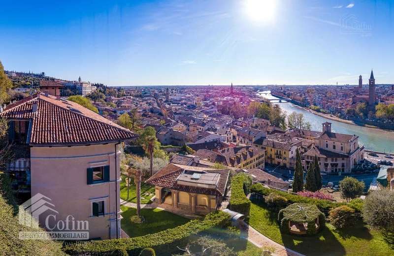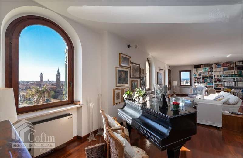 We are happy to offer this opportunity of an elegant apartment with terrace garden for sale in the Historical Center of Verona, close to the marvelous Teatro Romano and Castel San Pietro, in a wonderful position overlooking the city. We have access to the building through a suggestive elevator, crossing the condominium garden we arrive at the Liberty Villa called “Belvedere”, in a perfect condition completely refurbished. The marble staircase leads us to the second and last floor where we have access to the apartment which is composed by a beautiful and very ample lounge area with four windows with a breath-taking view over Verona and its monuments, an eat-in kitchen with a small balcony and a family bathroom. On the upper floor takes place the nighttime area where there is a hallway, three bedrooms, two family bathrooms, a studio and a small balcony. From the balcony we have access to the terrace garden of about 200 sqm which is located right under the beautiful Castel San Pietro, with a stunning view. Completes the comfort a cellar on the ground floor.