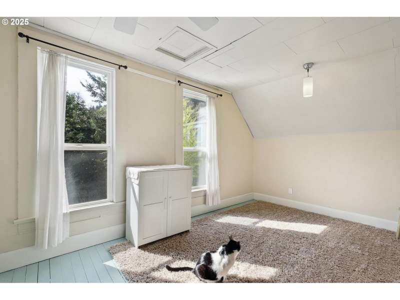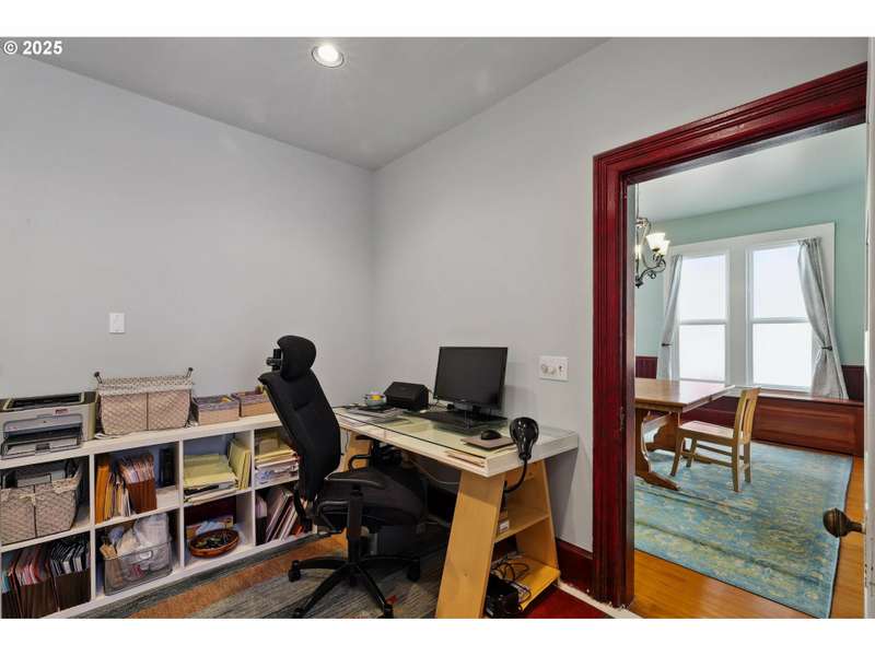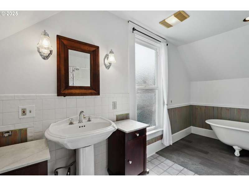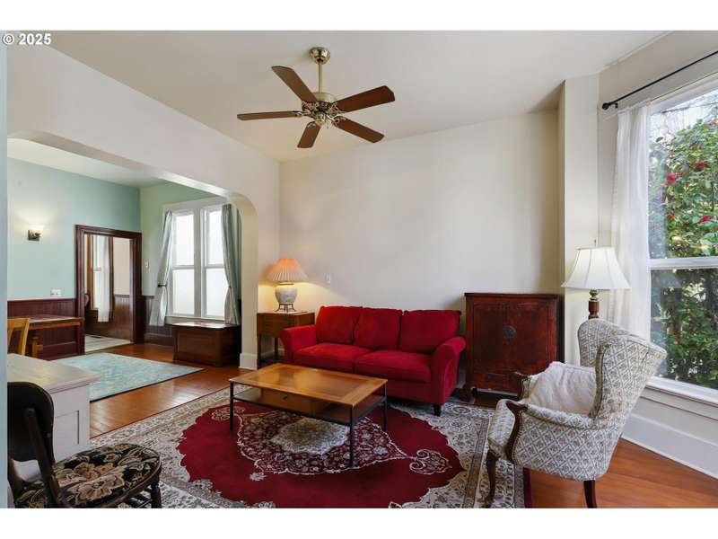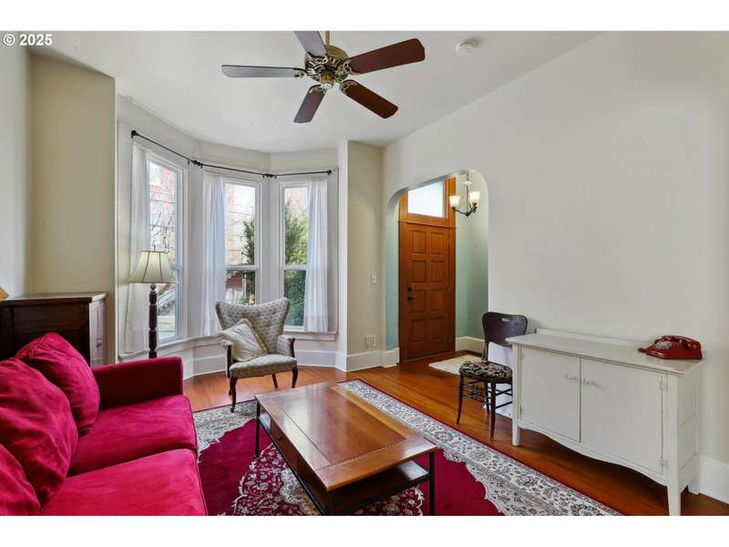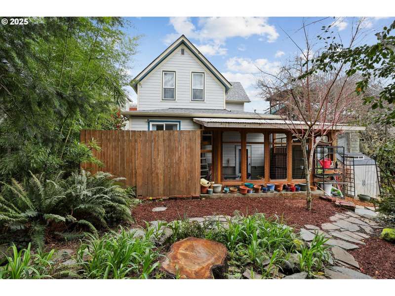 Welcome to this beautiful Queen Anne Victorian in Portland's historic Lair Hill neighborhood. The open floor plan on the main level & original fir floors, high ceilings, elegant archways, and bay windows make everyday living easy & relaxing. The dining area is conveniently adjacent to the den with half-bath & laundry. A spacious walk-in pantry adds functionality to the kitchen, and the breakfast nook with sliding door to the private garden is ideal for quiet morning coffees or dinner-party drinks. Three upstairs bedrooms come with transom windows and picture-rail molding, & the large bathroom boasts a claw-foot tub, walk-in shower, & built-in storage. With oversized rooms, a kitchenette, and generous laundry-room, the lower level offers maximum flexibility—guest quarters, home office, ADU? A covered backyard patio doubles as a catio (meow!) and the fenced mini garden means Fido stays safe while getting some sun! Recent updates include: new roof (2020; lifetime warranty transfers to new owner); 95% gas furnace (2021); LVT flooring in kitchen (2020); renovated basement w/ two Mitsubishi mini-splits (2017). A significant remodel in 1998 added: new foundation; updated plumbing & electrical throughout; modern ducted HVAC; double-pane windows. Lair Hill offers quick access to the South Waterfront, John’s Landing, OHSU, the SW Trails, freeways, & downtown. There’s boating, kayaking, & paddle-boarding on the Willamette, and scenic walks along its paths. With Lair Hill Park and top schools close by (Ainsworth Elementary, West Sylvan, Lincoln High, plus Cedarwood Waldorf School across the street!), this move-in ready home is peak convenience! [Home Energy Score = 3. HES Report at https://rpt.greenbuildingregistry.com/hes/OR10236294]