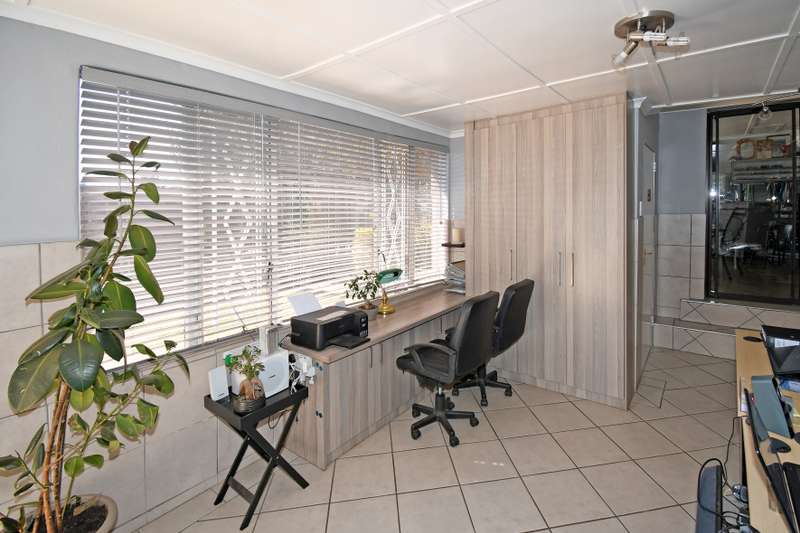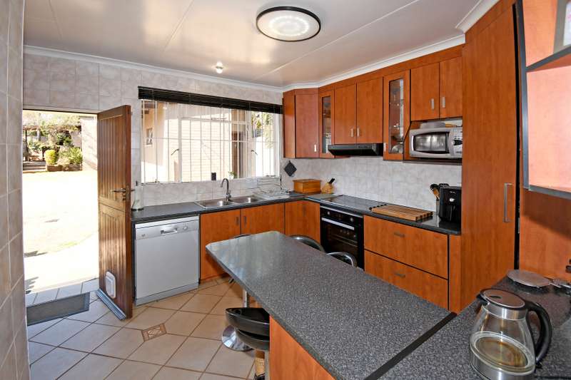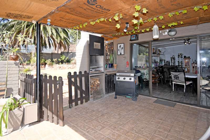 North facing family home on double stand The character family home is ready to move in, unpack and enjoy. Comprising ent hall leading to north facing lounge with fireplace, separate dining room next to the kitchen, 3 bedrooms, all with built in cupboards, the main bedroom has an additional study / gym area looking onto the garden, 2 bathrooms - main en suite. The kitchen is well appointed with granite tops and opens to the back garden for easy entertaining. There is a separate laundry, garage, carport and additional parking. A home office plus a entertainment room which opens to braai and pool area, although this could easily be used as a cottage. A value packed offering in prime position. Asking R1 850.000