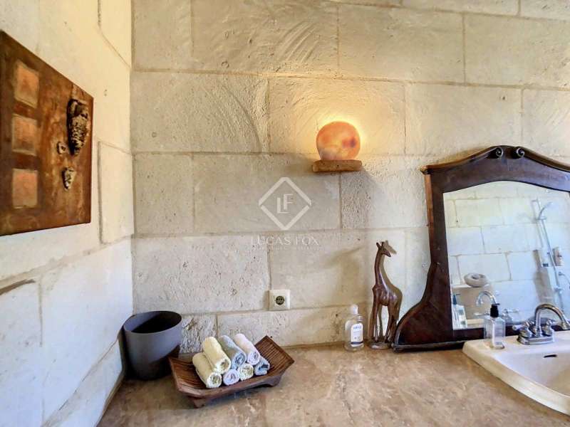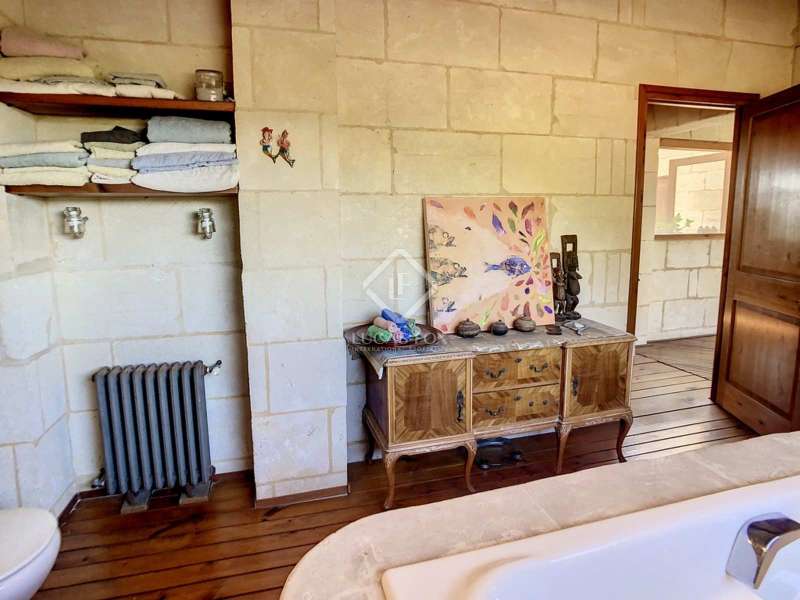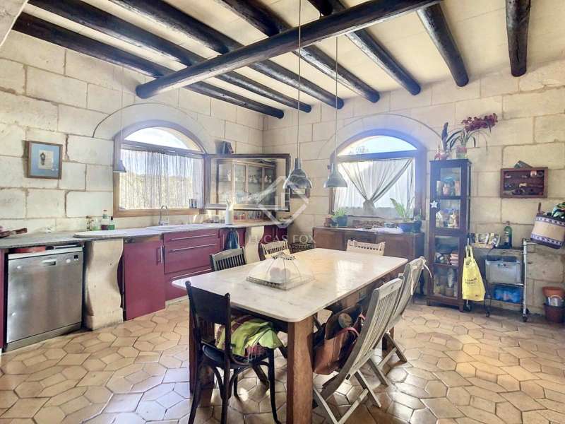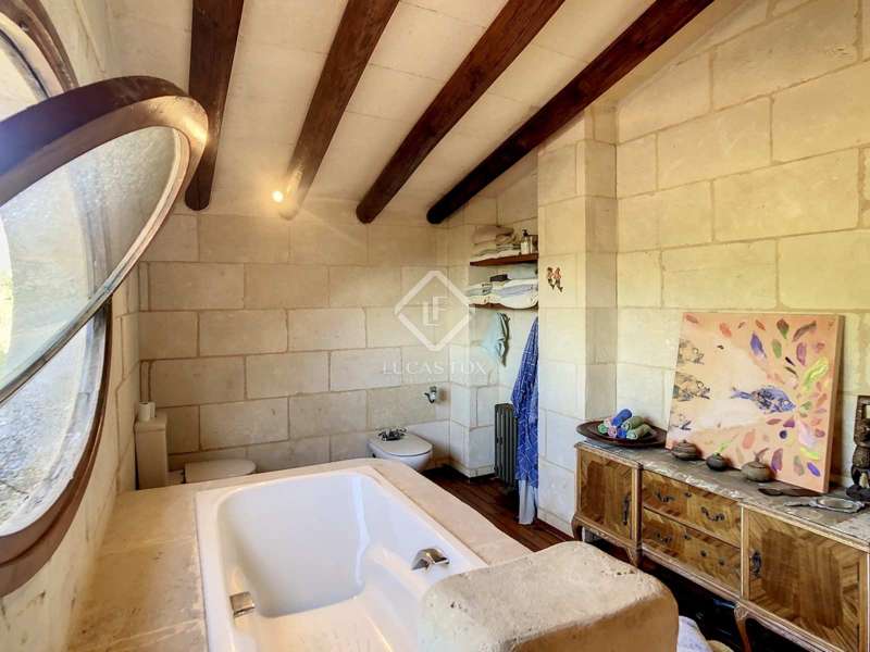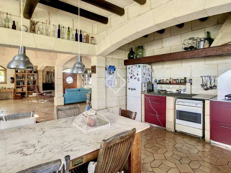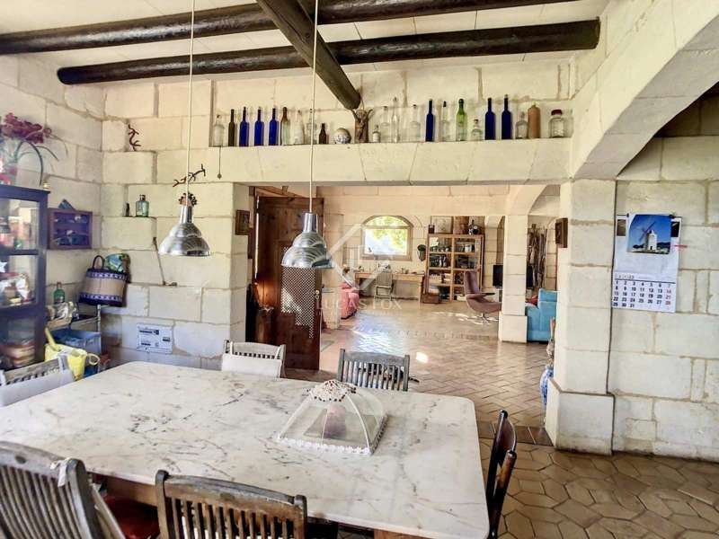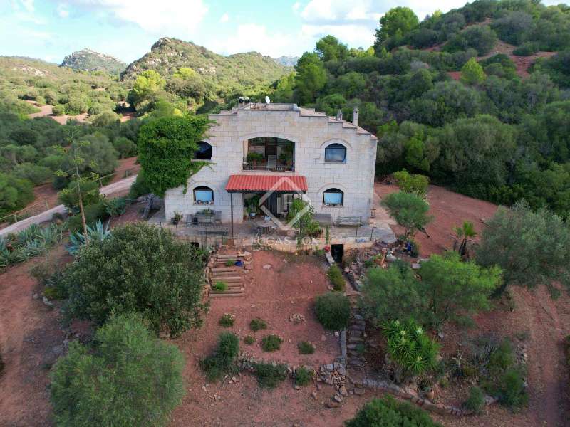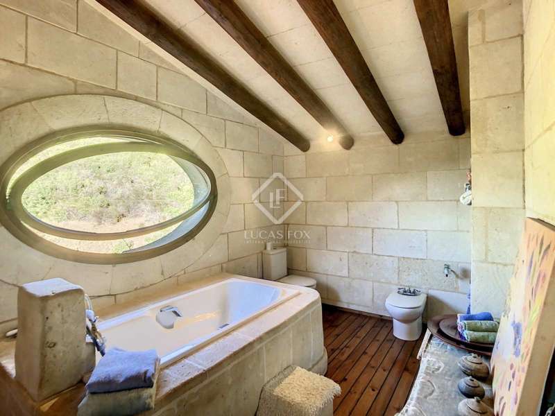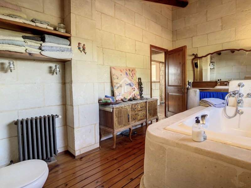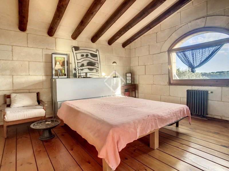 Rustic design estate with a 220 m² built entirely sandstone house raised off the ground to prevent moisture from entering the house, with a 100 m² herd and few neighbors in the Alaior countryside on a 16 ha plot with horses . The property is distributed in two floors. Through the terrace with an incredible view at the front of the house you enter the house giving access to the hall, the large living room with a fireplace that communicates with the fully equipped kitchen, with a large dining table and several windows. that let in natural light occupying an area of 110 m². Both rooms have underfloor heating. On this floor there is also a bathroom. The living room has a second door that opens onto the terrace with a beautiful view over the plot around the house. An open stone staircase leads us to the first floor. Here we find the night area with two double bedrooms, one with a dressing room, a large bathroom with a bathtub and a large porthole window with unobstructed views of the countryside. This floor is equipped with radiators and a salamander fireplace to make it more comfortable. Between the two bedrooms and the landing there is an open terrace with wide views where you can enjoy the views, the silence and the horses that run through the property. Due to the special location of this beautiful and special farm, you can imagine being alone on the island for a while, even though it is only 7 km from the town of Alaior. A unique property to live all year round, or spend time with family and/or friends. Contact us for more information, or to arrange a visit.